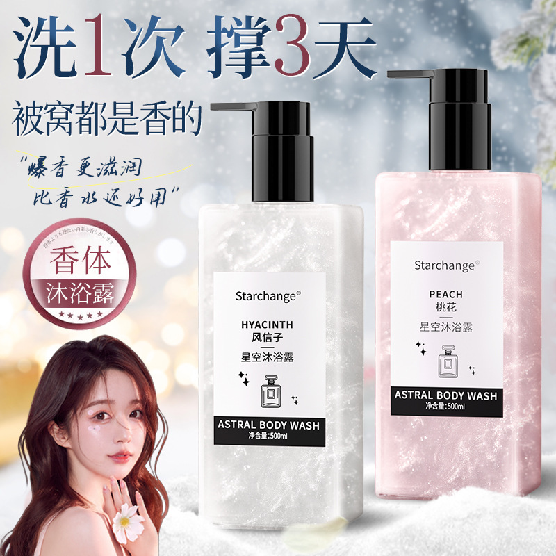 バイオレットスタースターライトサンドシャワージェル、ピーチの花の香り、香りが長持ち、肌を落ち着かせ、潤いを与え、保湿するシャワージェル