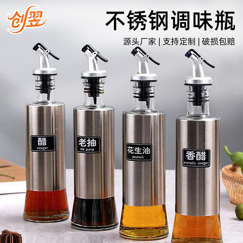 ステンレス製調味料ボトル醤油酢キッチンホームレストランハイエンドポータブルプレスオイルフリーオイルポット調味料瓶