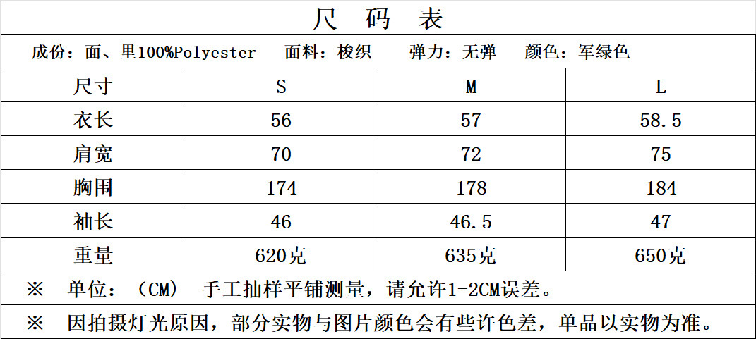 颜色 绿色夹克,棕色夹克,深红色夹克,黑色夹克,卡其色夹克,黄色夹克,白色夹克,粉色夹克,咖啡色夹克