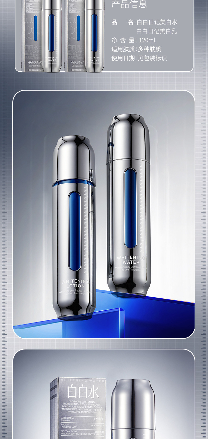 产品规格 白白日记美白水,白白日记美白乳液