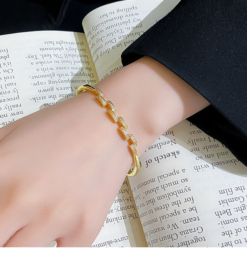 真金电镀铜镶嵌方形锆石满钻手镯女层叠交错感高品质跨境饰品手环