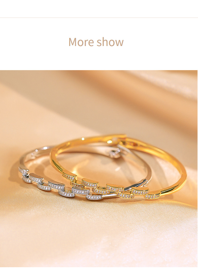真金电镀铜镶嵌锆石半圆交错设计感手镯高品质满钻轻奢感手环批发