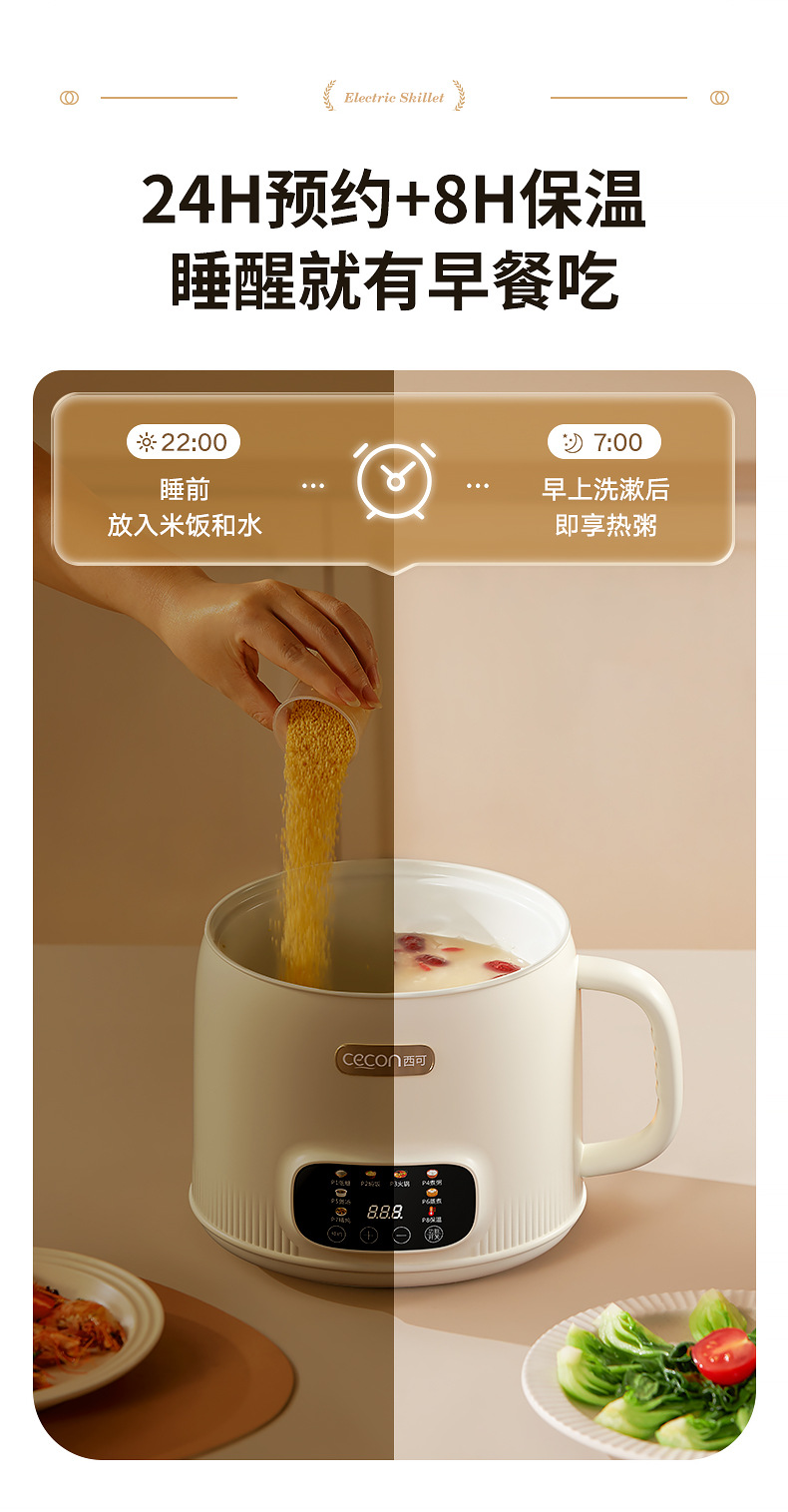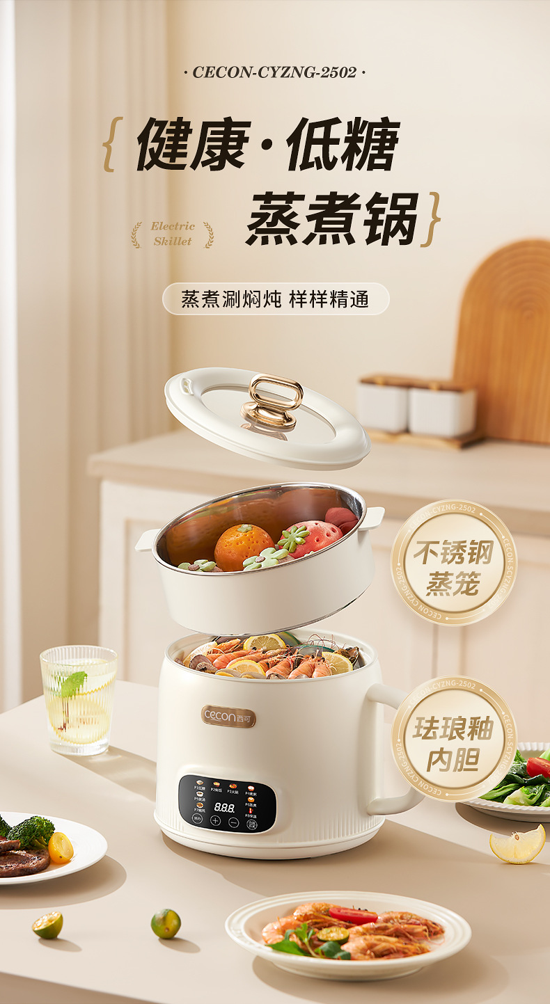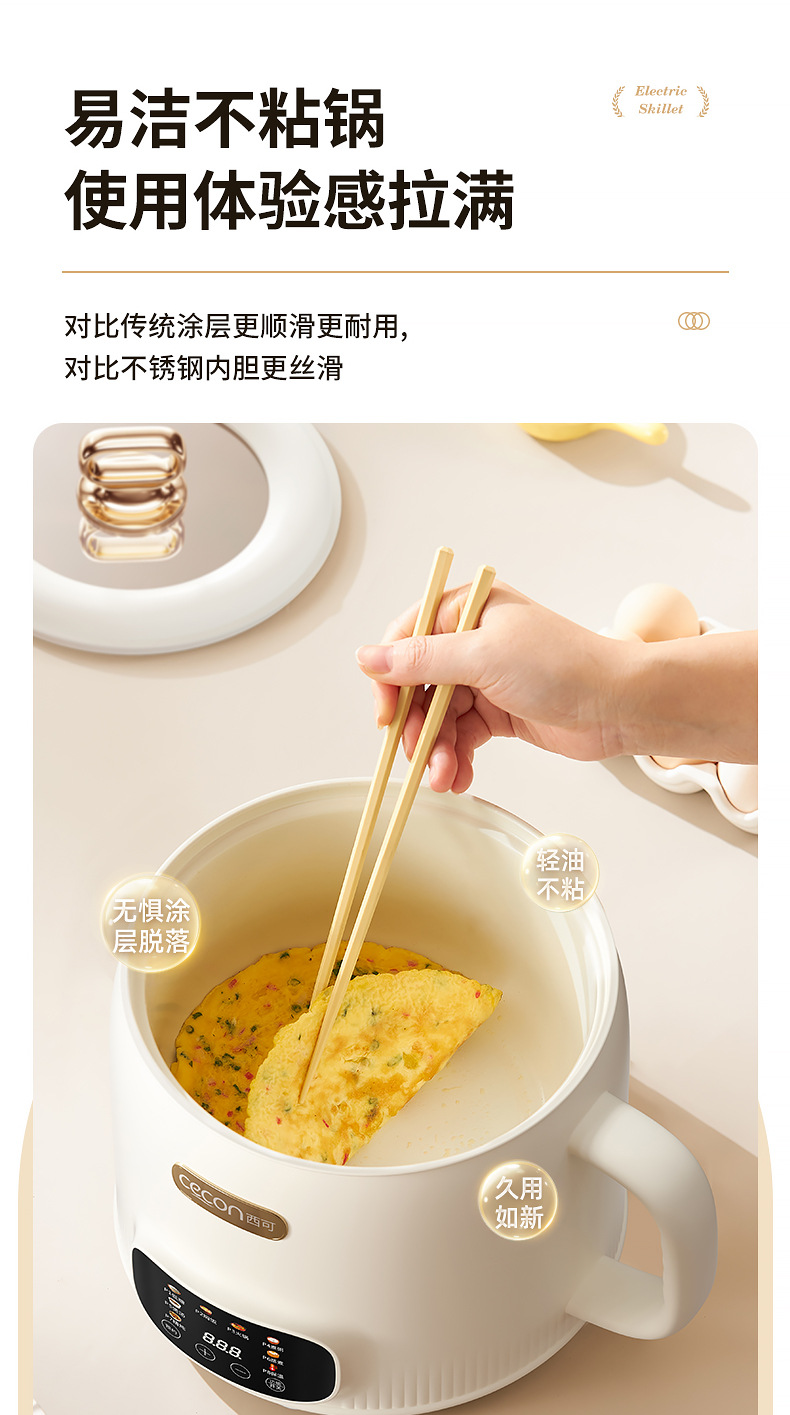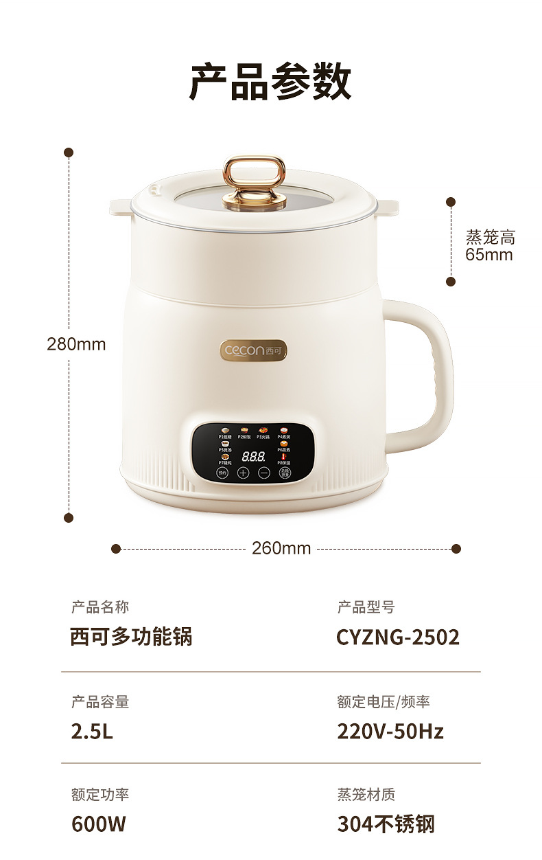 西可​电煮锅2.5L智能低淀粉饭煲家用宿舍多功能蒸煮一体锅电饭煲