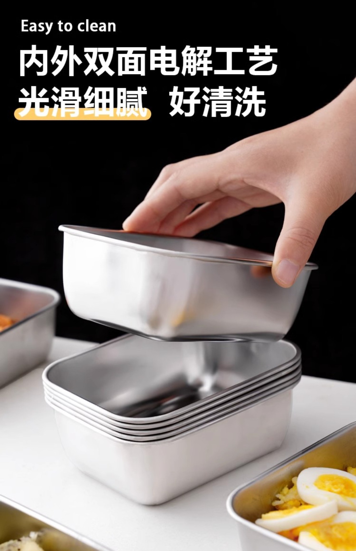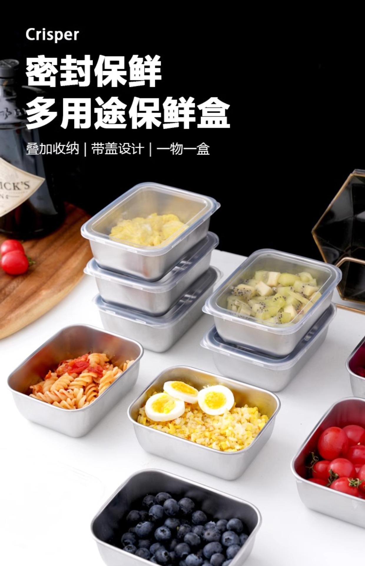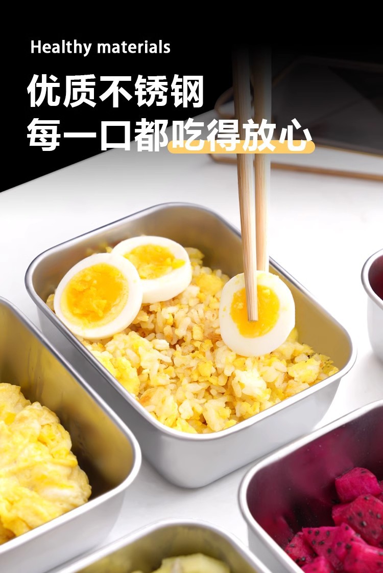 食品级不锈钢保鲜盒带盖密封盒冷冻保鲜盒冰箱收纳盒备菜盒毛巾盘