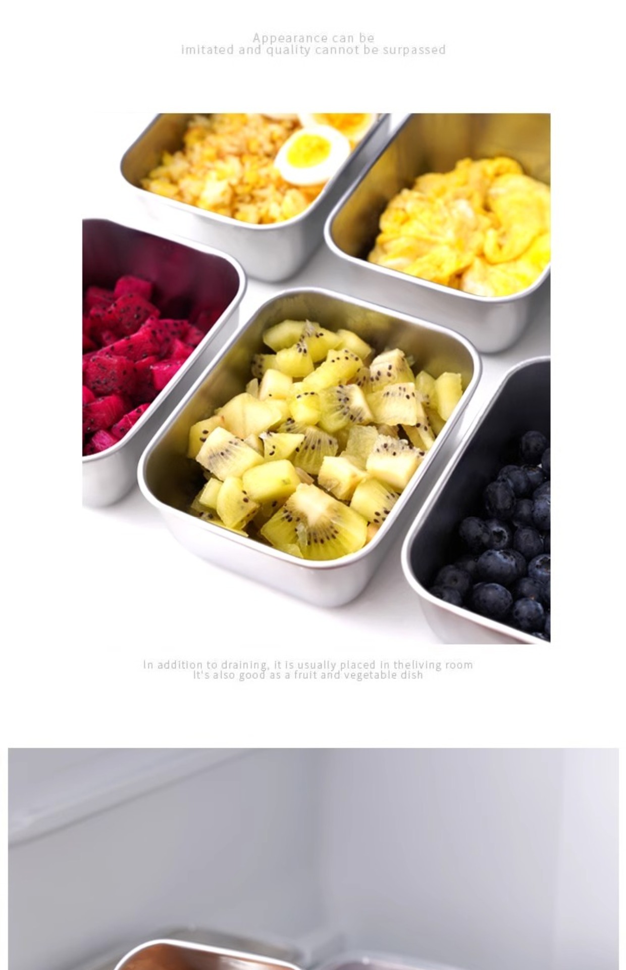 简约不锈钢保鲜盒方盘冰箱收纳盒带盖子烧烤凉菜盘果盘蒸鱼烤鱼盘