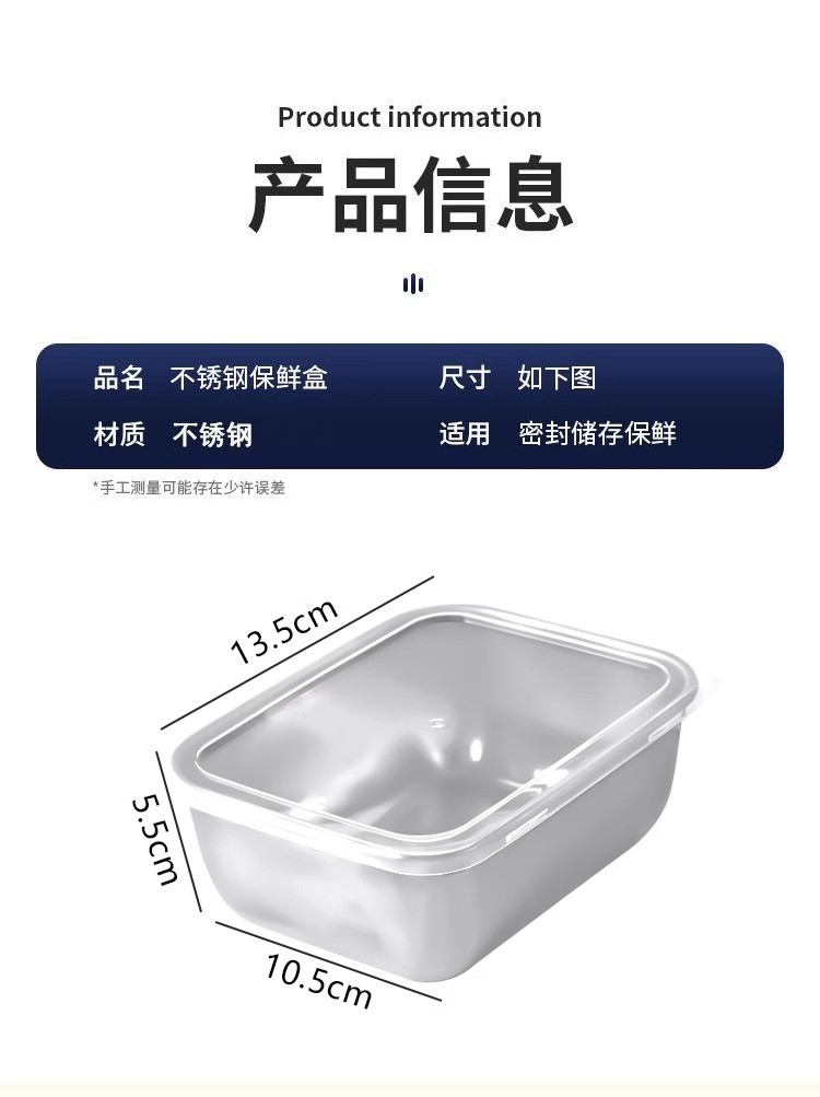 规格 小号不锈钢保鲜盒-1个装【带盖】,大号不锈钢保鲜盒-1个装【带盖】