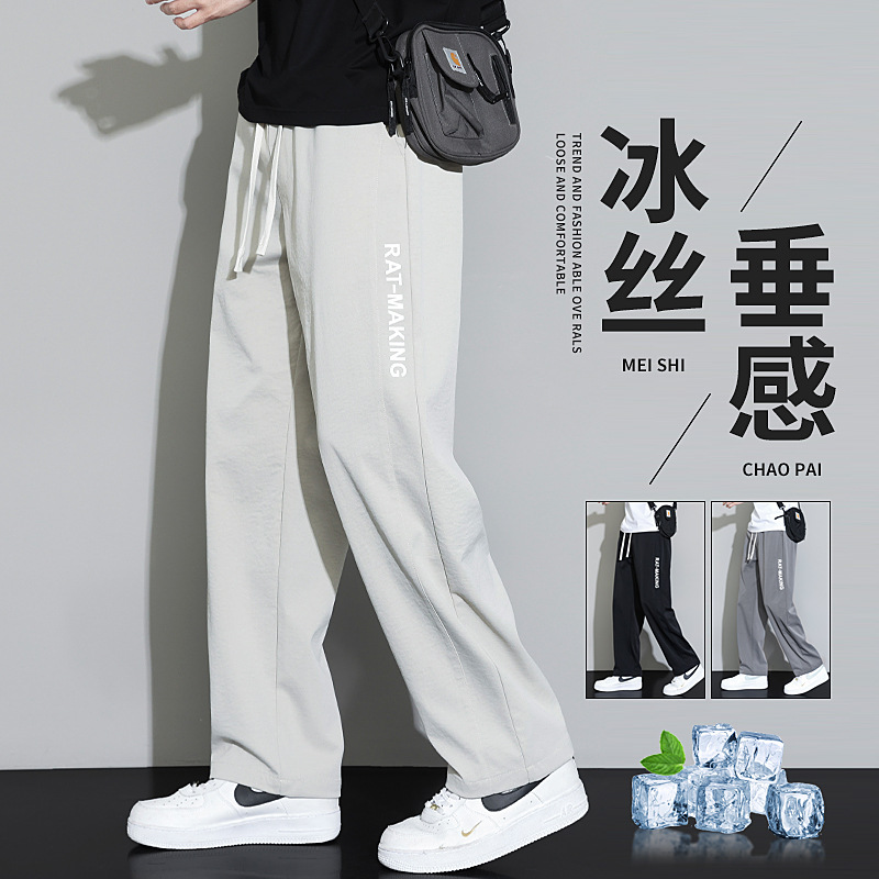 カジュアルパンツメンズ 2025 新しいルーズストレートスポーツメンズパンツアイスシルク夏薄いメンズロングパンツメンズ