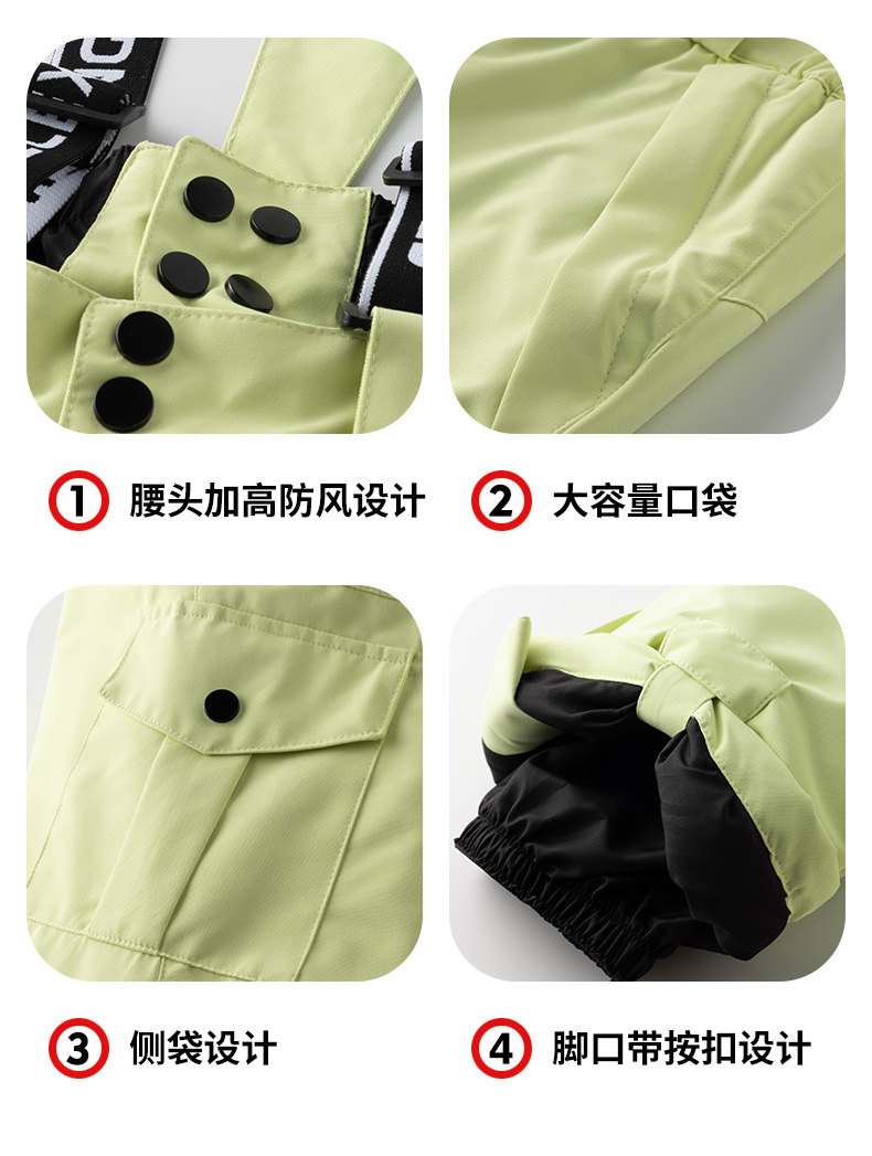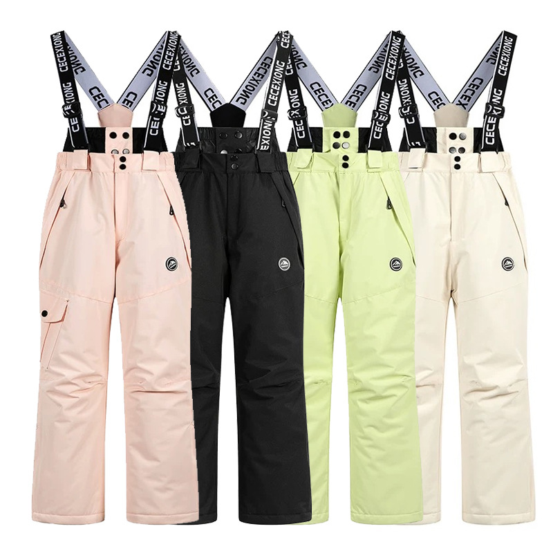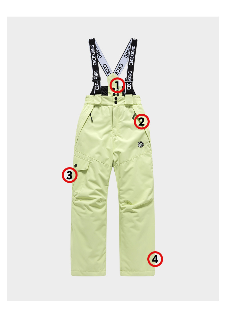 跨境儿童滑雪裤男女童加厚保暖户外防水背带裤单双板中大童棉裤子