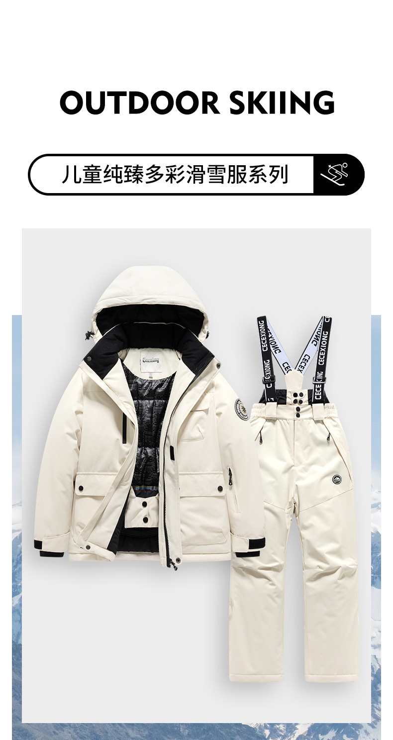 跨境冬季儿童滑雪服套装男童保暖防水防风专业连体女童滑雪背带裤