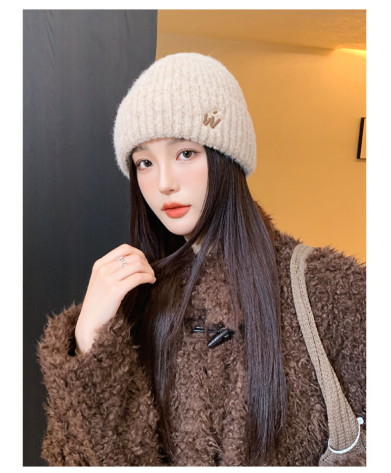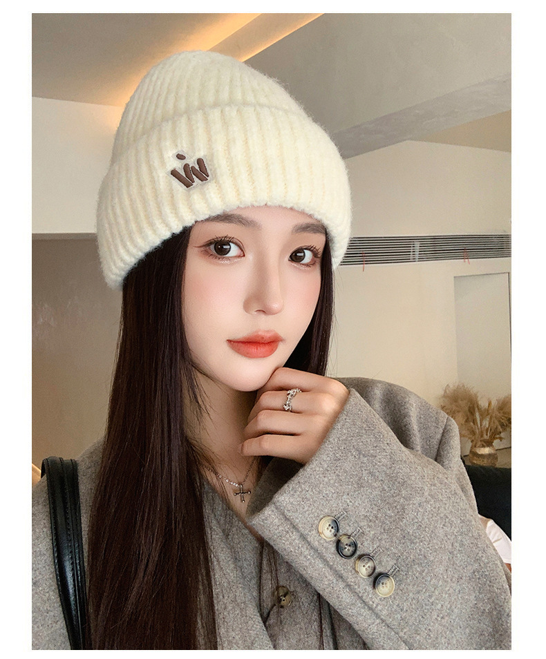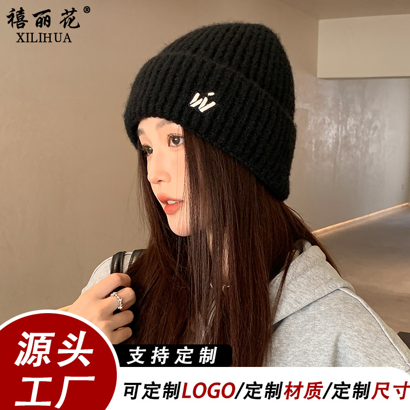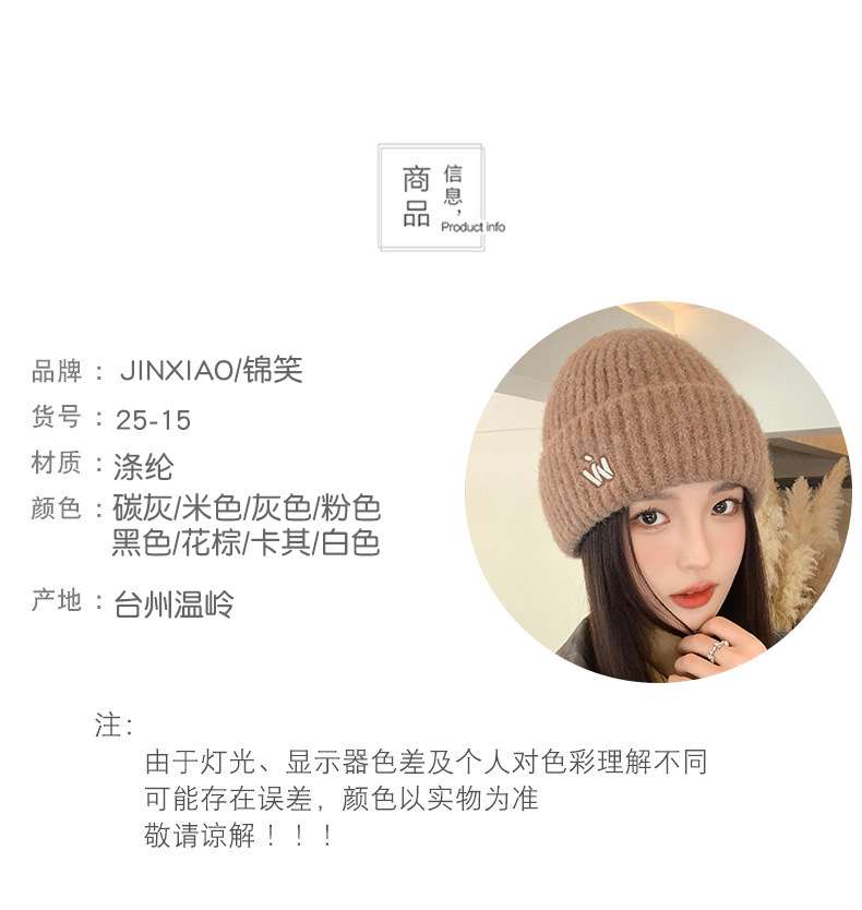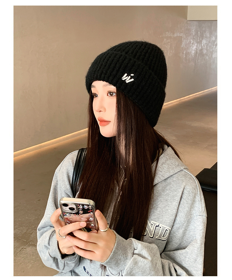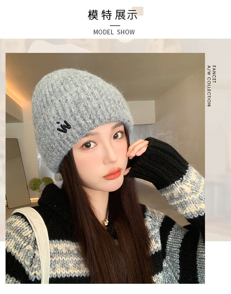 新款字母刺绣针织帽女秋冬保暖护耳毛线帽子显脸小百搭包头帽冷帽