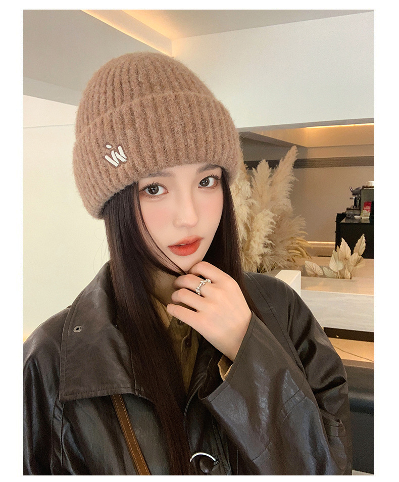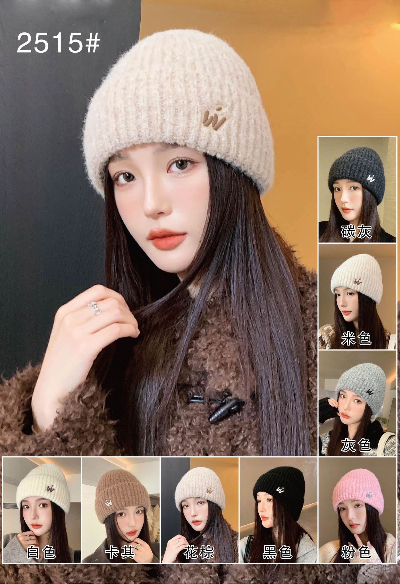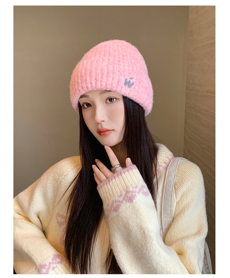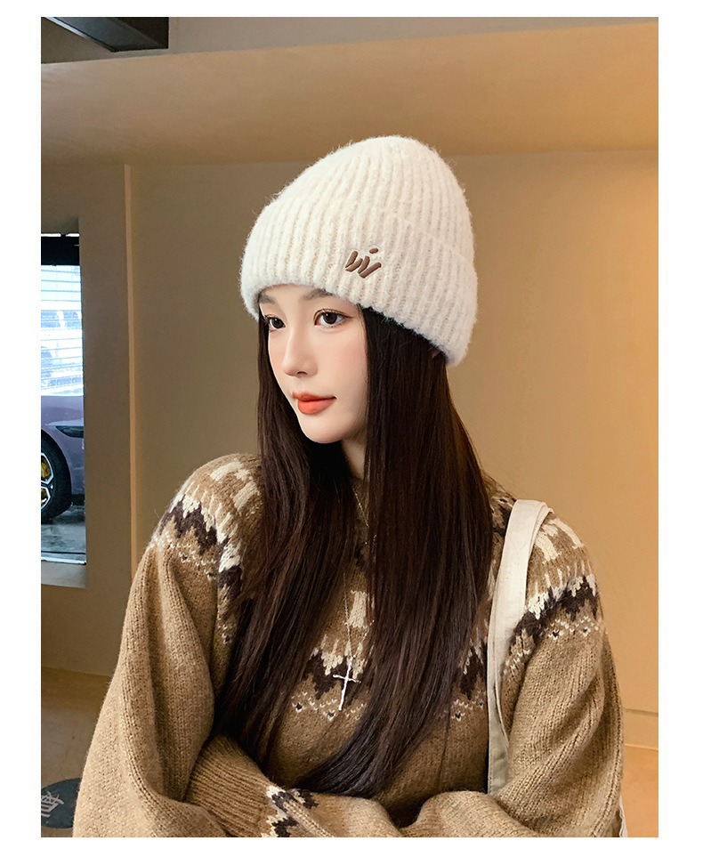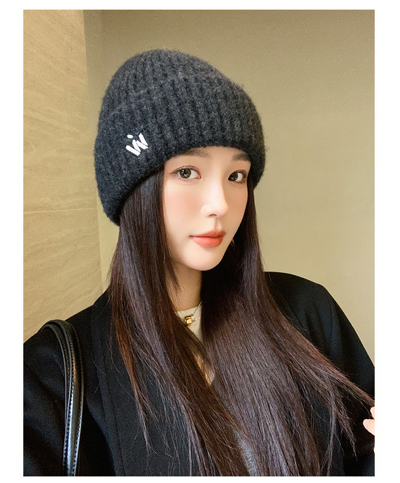 新款字母刺绣针织帽女秋冬保暖护耳毛线帽子显脸小百搭包头帽冷帽
