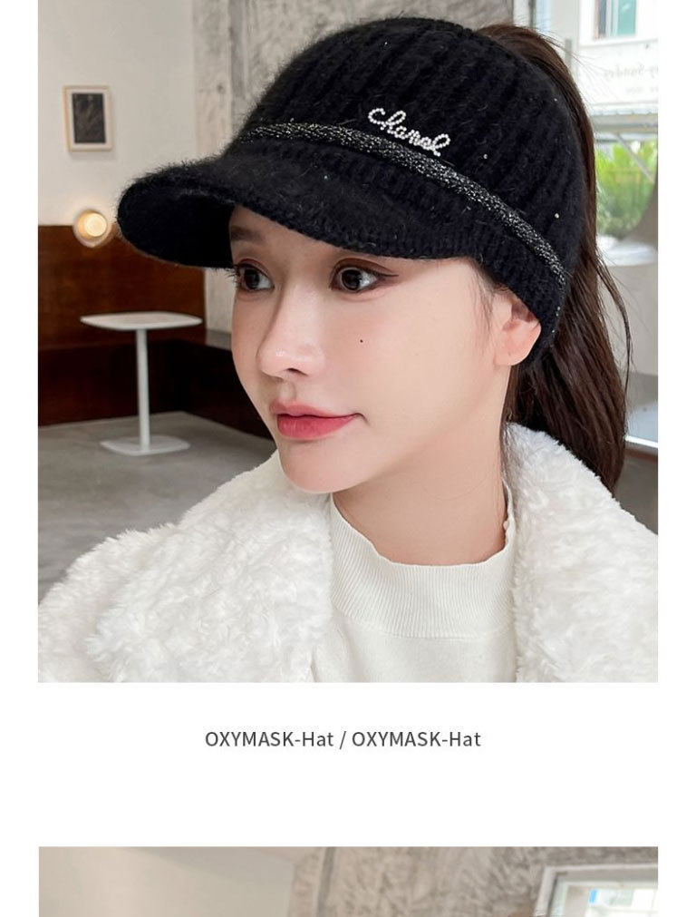 帽子女秋冬季时尚百搭保暖加厚毛线帽骑车防寒护耳空顶鸭舌针织帽