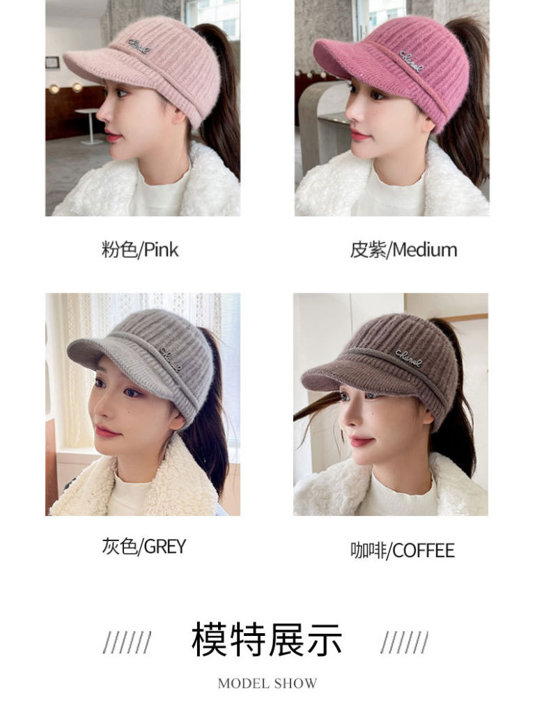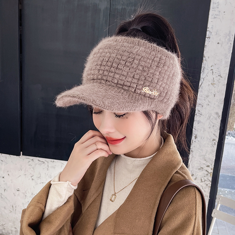 秋冬季韩版鸭舌空顶女帽毛绒空顶帽骑行防寒保暖百搭休闲毛线帽