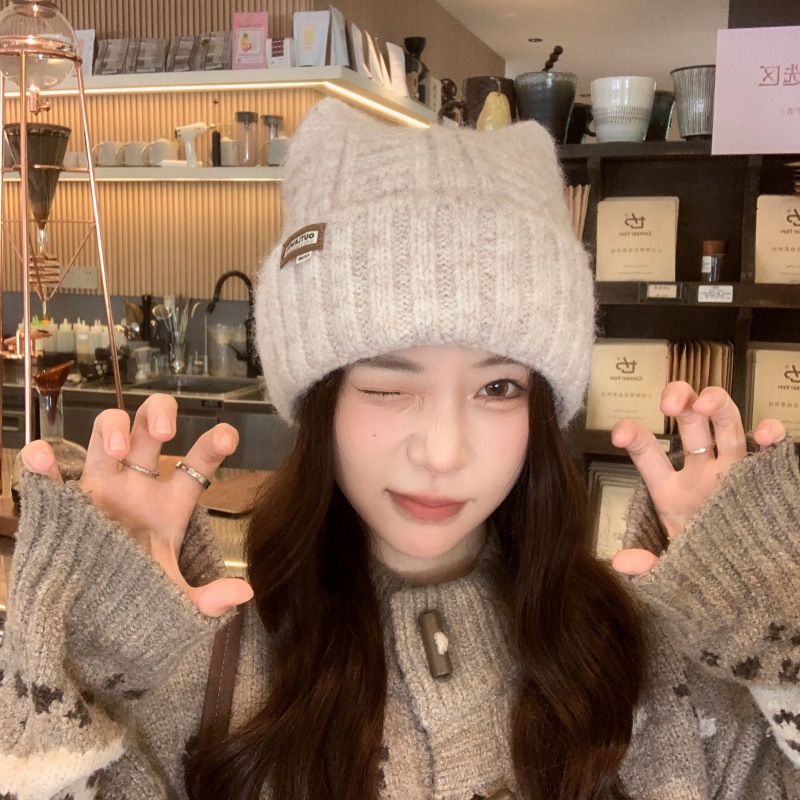 猫耳朵帽子女款秋冬季韩系高级感可爱保暖护耳显脸小针织毛线冷帽