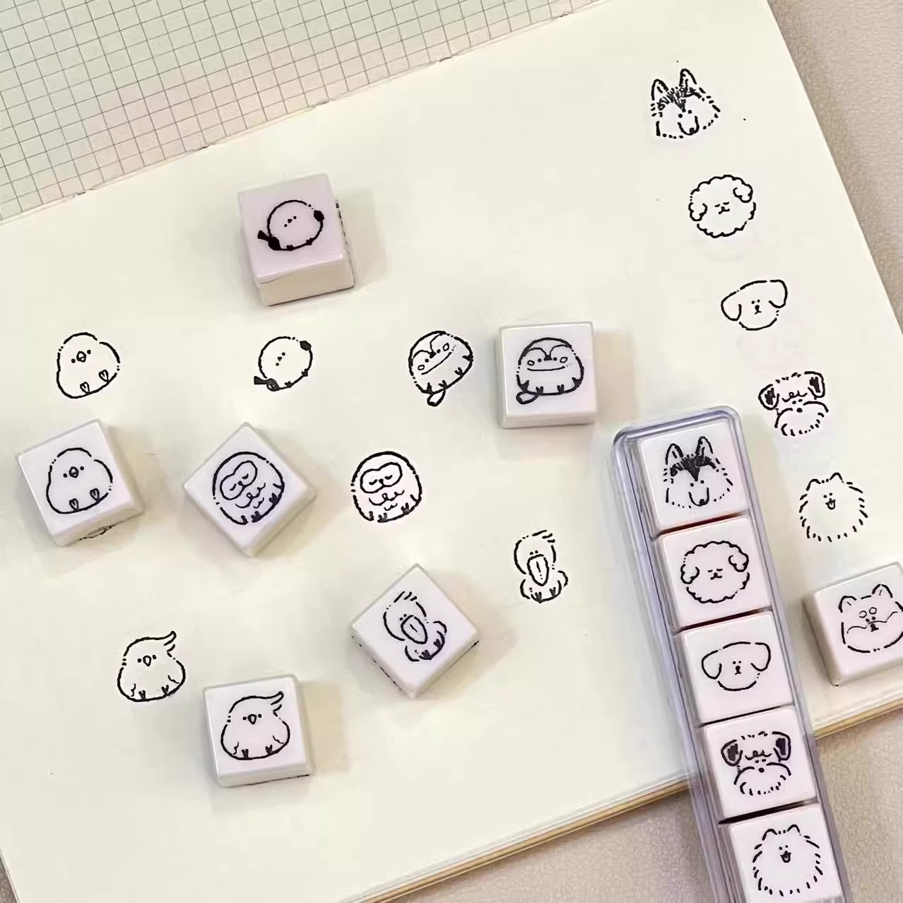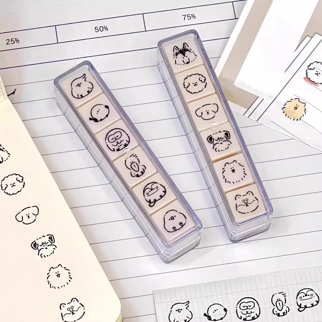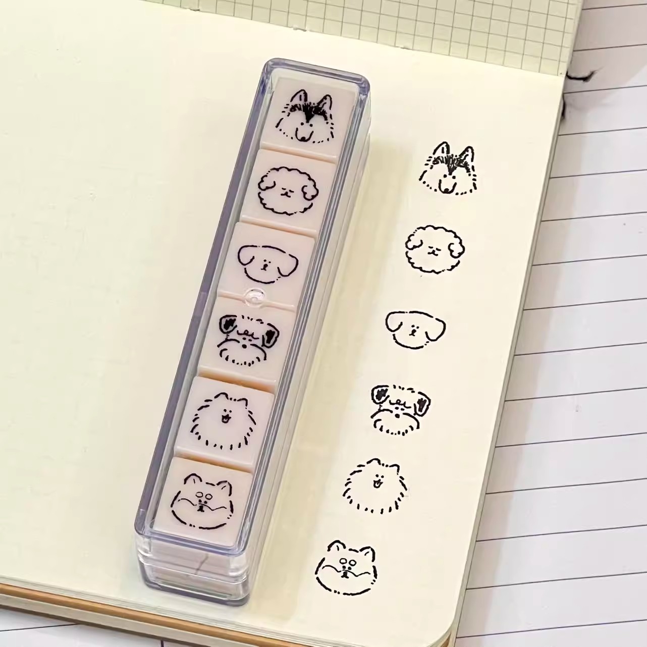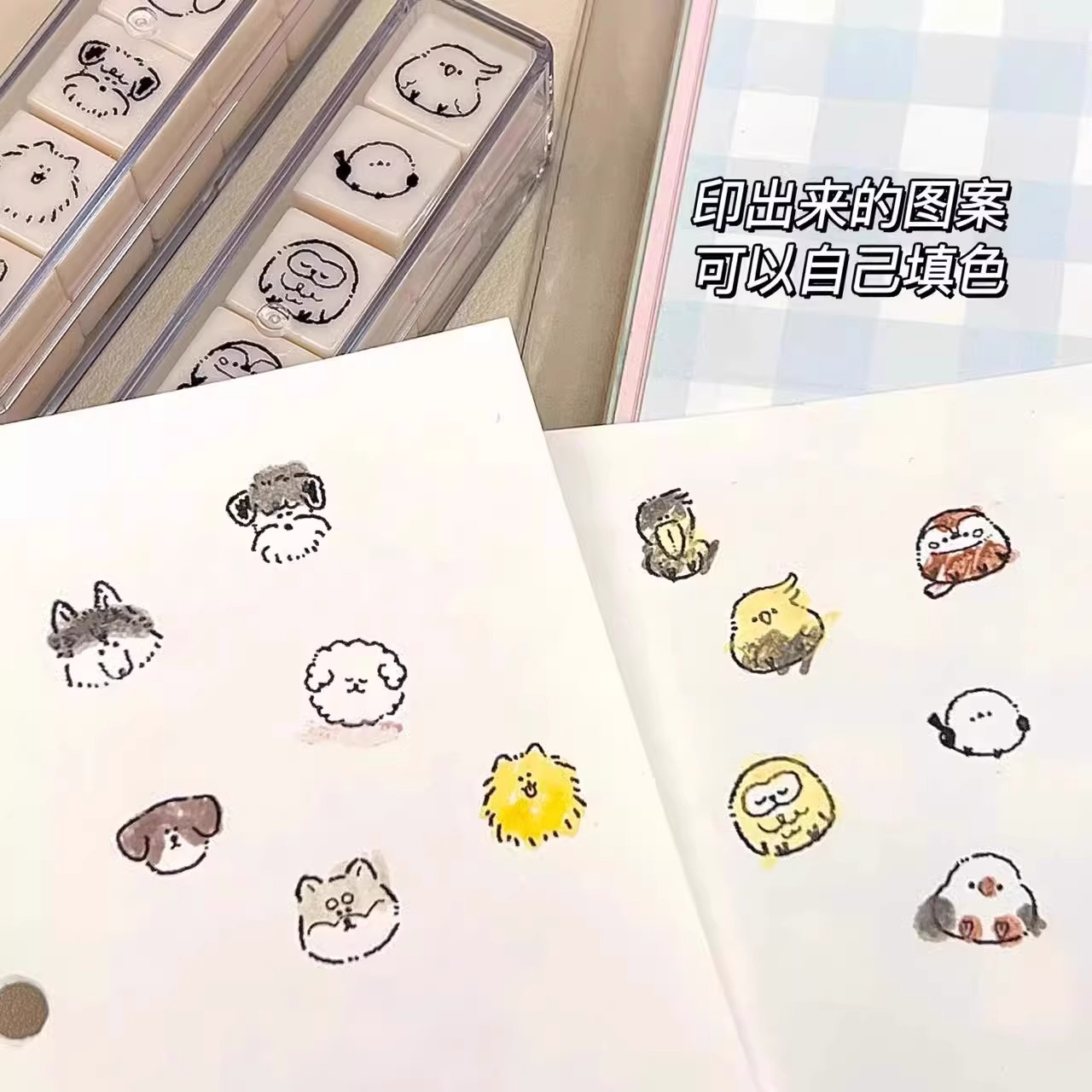 小狗鹦鹉可爱迷你六联印章可拆卸手账素材diy装饰素材便携打卡章