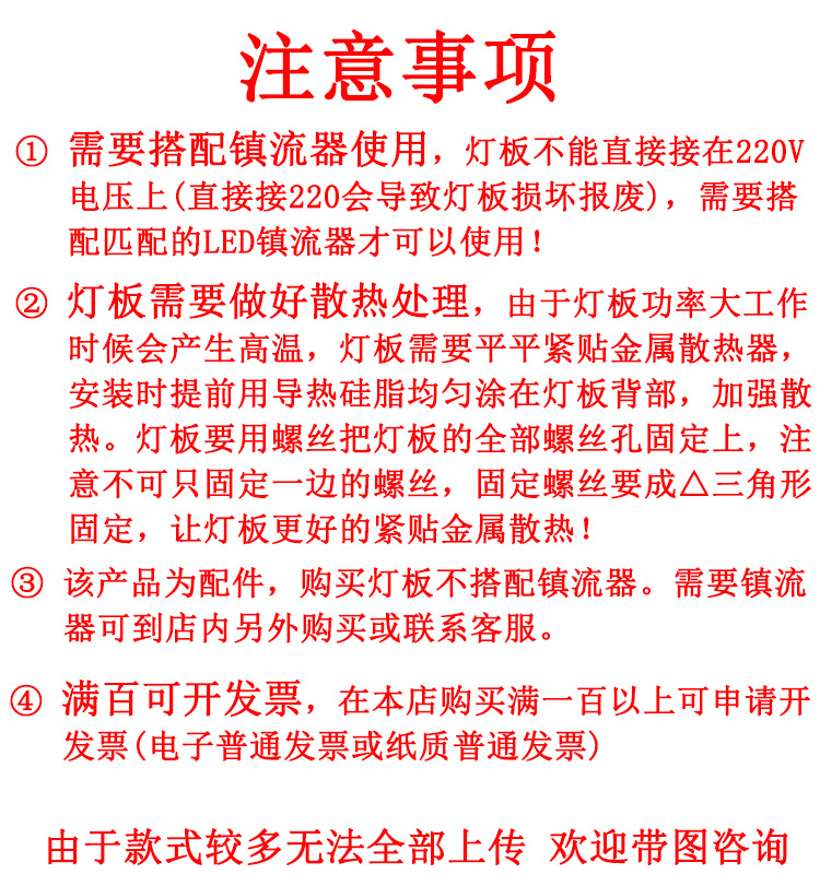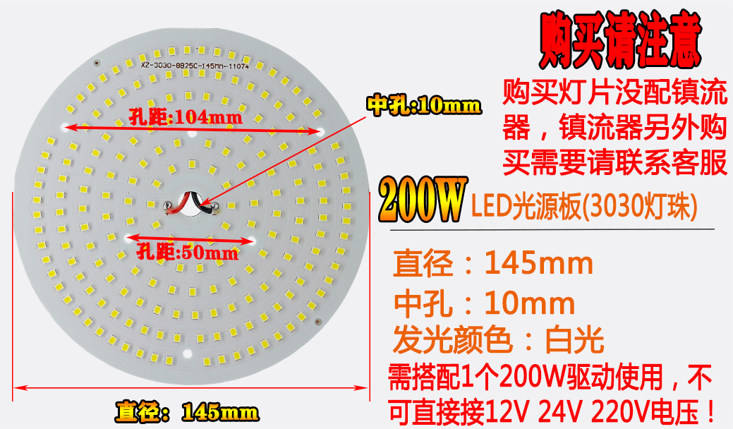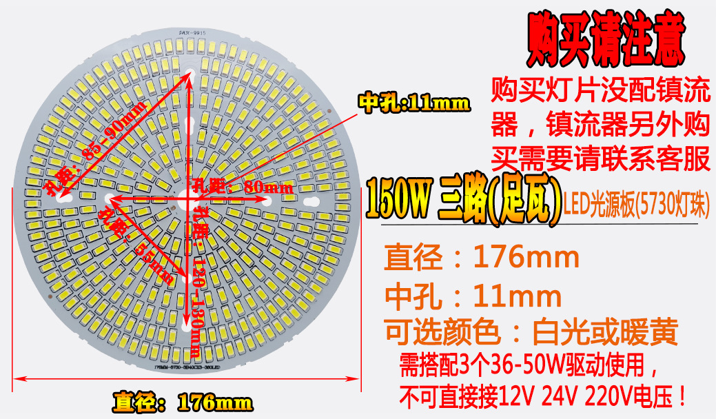18W(直径85mm)高亮3B18C 2835,24W(直径85mm)焊母插头 3B12C,24W(直径145mm)高亮3B24C 2835,30W(直径85mm)焊母插头3B15C 2835,PHILIPS LUMILEDS芯片/30W(直径85mm)焊线 15C,36W(直径112mm)18C 3030,36W(直径120mm)2835灯珠,36W(直径145mm)高亮3B36C 2835,36W(直径194mm)焊母插头 3B36C/2835,50W(直径92mm)2835焊线,50W(直径112mm)3030 25C-ZX,50W(直径138mm)高亮3B50C 2835JL,50W(直径150mm)高亮2835 3B50C多孔位,70W(直径112mm)3030 4B18C-ZX,80W(直径104mm)焊母插头,80W(直径109mm)2835焊线 4B20C-ZX,24W(直径112.8mm)焊母插头 5730,24W(直径120mm)焊母插头 5730,36W(直径112.8mm)焊母插头 5730,50W(直径112.8mm)焊母插头 5730,50W(直径145mm)焊母插头 5730,70W(直径112.8mm)焊母插头 5730,100W(直径138mm)焊母插头 5730,灯板/50W(直径103mm)焊母插头 孔7mm2835灯珠,80W(直径125mm)3030 ZX,光源板/100W【直径125mm】 4B25C-ZX,灯板/100W(直径130mm) 焊线 孔10mm2835灯珠,灯板/100W(直径139mm) 焊母插头 孔10mm2835灯珠,灯板/100W(直径141mm)焊线,100W(直径141mm)PHILIPS LUMILEDS芯片 5B25C-ZX,灯板/100W(直径142mm) 焊4线 3030灯珠4B25C,灯板/100W(直径145mm) 焊母插头 孔10mm2835灯珠,灯板/100W(直径150mm) 焊母插头 5B25C,灯板/150W(直径130mm) 焊母插头 孔10mm2835灯珠,150W(直径138mm)7B24C QY,光源板/150W【直径139mm】 6B25C-ZX,灯板/150W(直径141mm)6B25C焊线 ZX,灯板/150W(直径145mm) 焊母插头,灯板/150W(直径150mm) 7B25C单路 QY,灯板/150W(直径176mm) 焊母插头 六线,灯板/200W(直径145mm) 焊母插头 孔10mm2835灯珠,灯板/200W(直径190mm)焊母插 2焊点,灯板/200W(直径190mm)可焊两路 5B25C*2-ZX,灯板/300W(直径190mm)13B25C-QY,LED镇流器18-36W裸板,LED镇流器36-50W裸板,LED镇流器18-36W带壳,LED镇流器36-50W带壳,裸板驱动长方形70-100W,工矿灯裸板驱动100W带线 单路,工矿灯裸板驱动150W带线,工矿灯裸板驱动200W带线,LED带壳驱动100W公插,LED带壳驱动150W公插,LED带壳驱动200W公插,导热硅脂