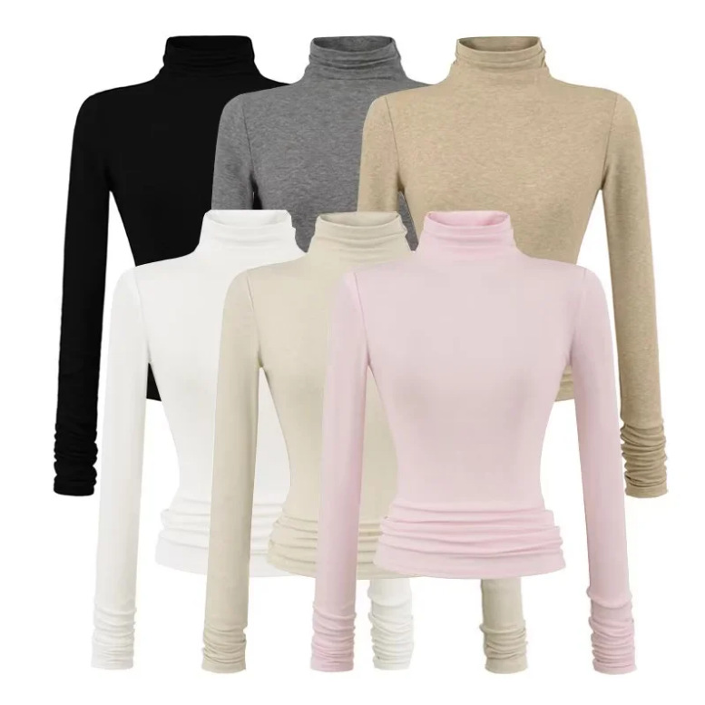 天丝羊毛高领长袖T桖女2025秋季新款美式辣妹纯色修身显瘦打底衫
