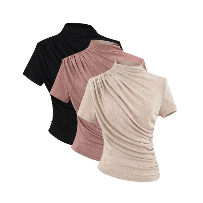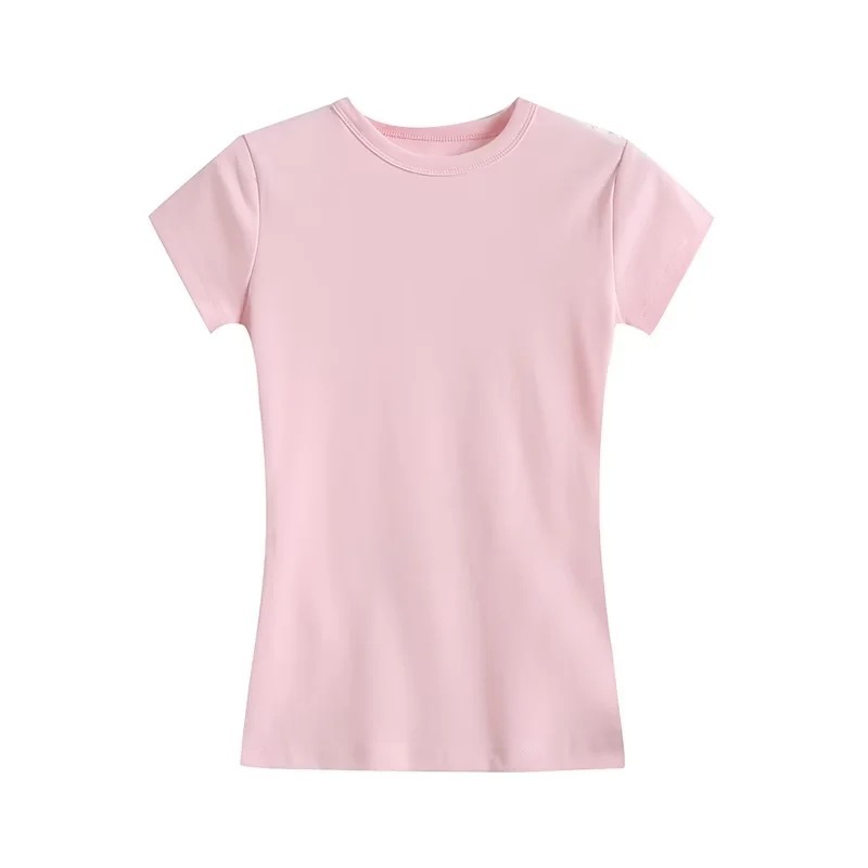 25夏の新型の女性ギャルの純色のカーダシアンと同じ円襟の修身の短いタイプの底のシャツの基礎のタイプの半袖tネック