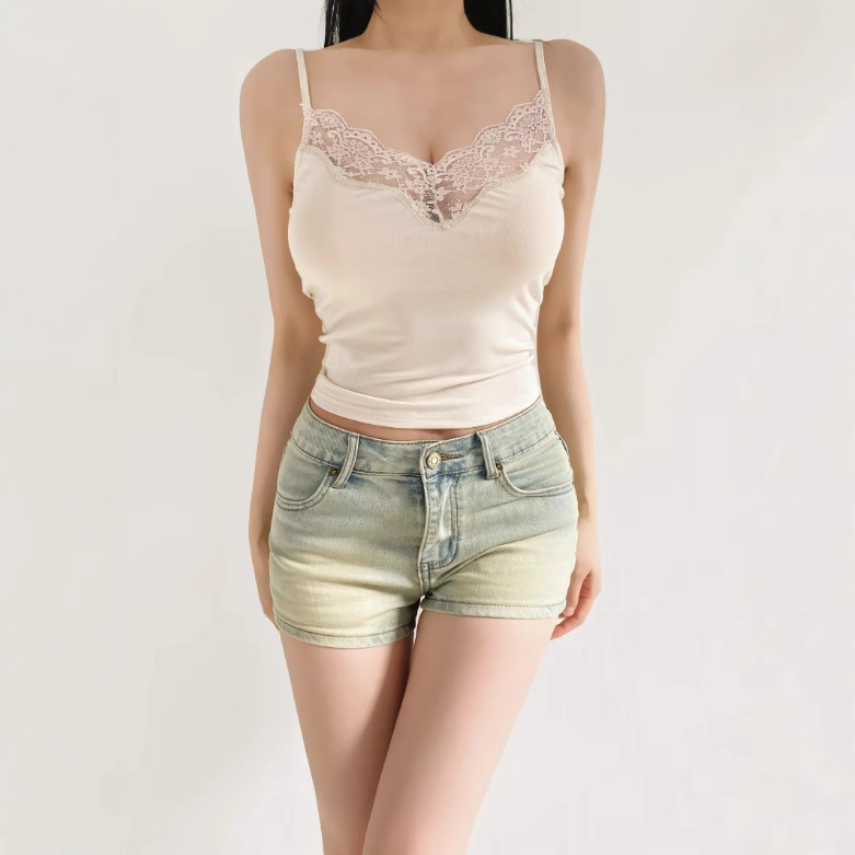25夏の新型女性レースはvネックの底のシャツをつづり合わせて身を修めます。