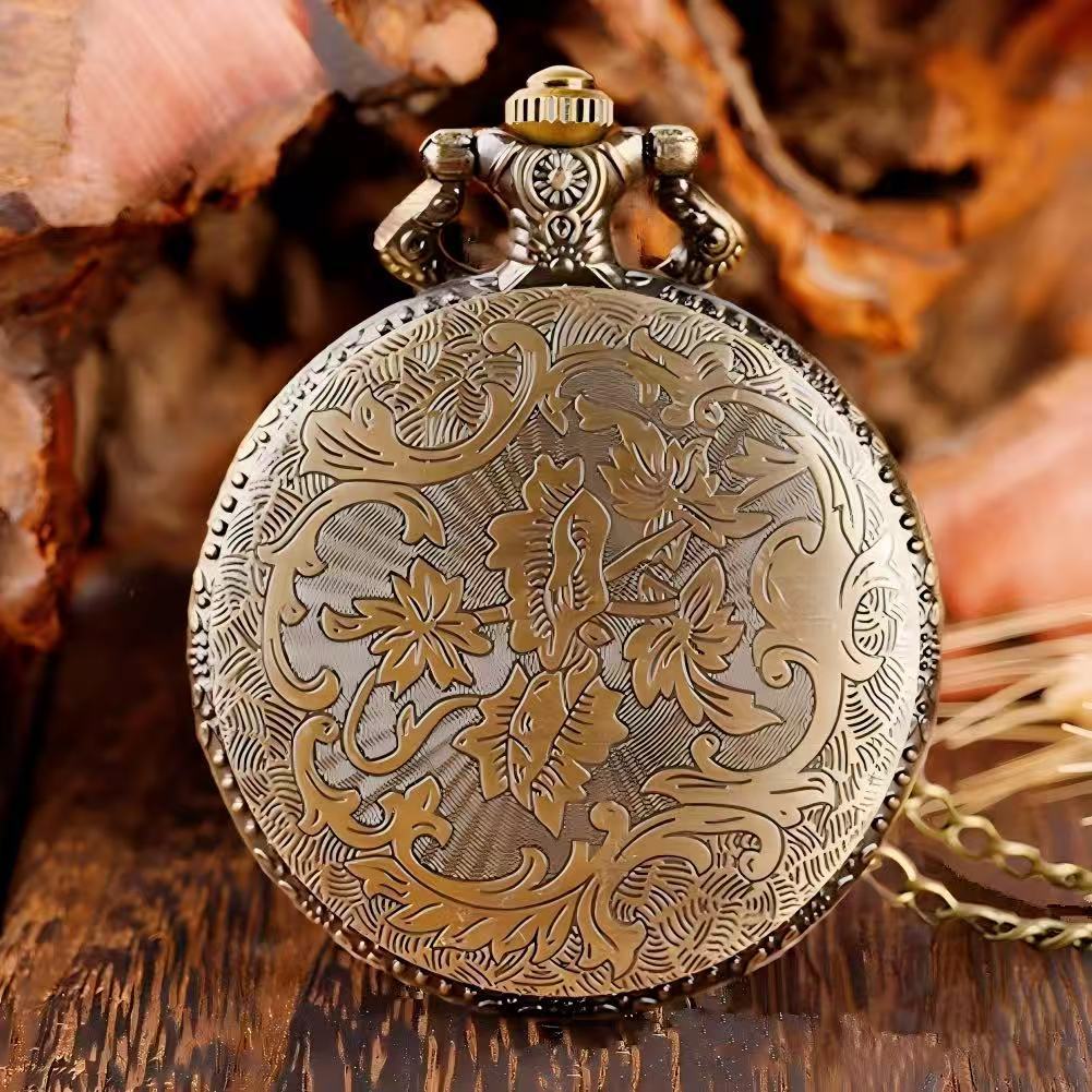 クリエイティブレトロフリップ懐中時計パーソナライズされた三次元彫刻昔ながらのネックレス時計男性と女性の学生記念クォーツ時計ギフト