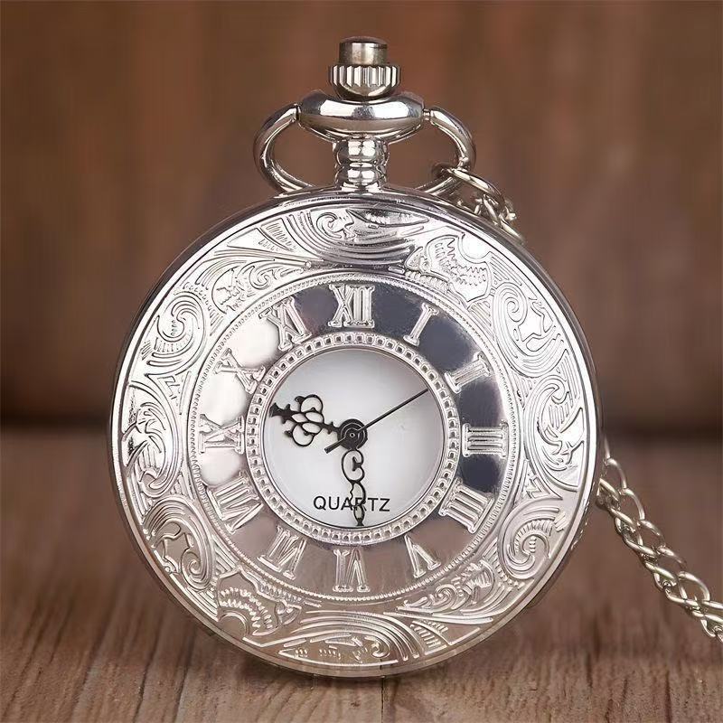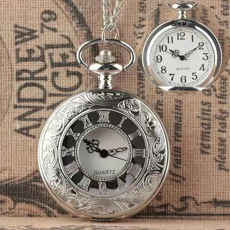 工厂批发复古罗马镂空怀表男女装饰古董石英表跨境专供大号怀表