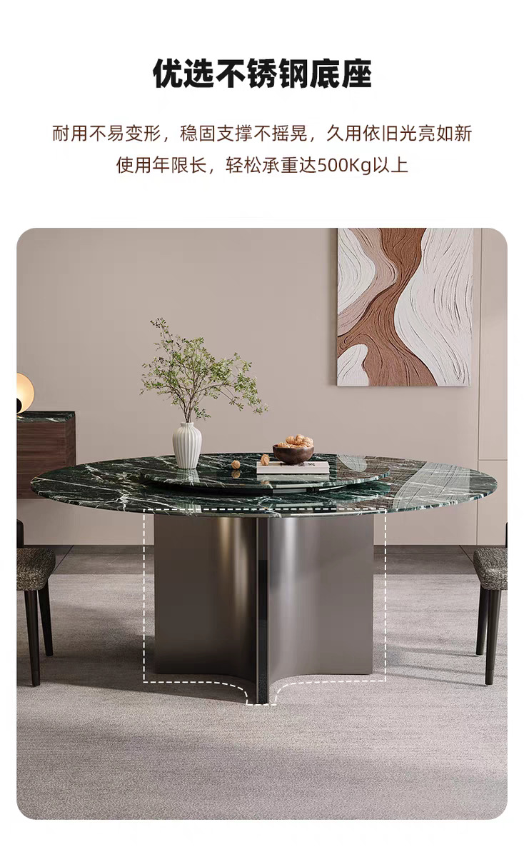 简介:采用普拉达绿天然奢石桌面,假一白送。加厚3.6桌面,不锈钢底座,十分稳固!且有高级感!