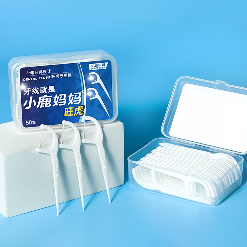 小鹿妈妈牙线50只盒装30支一次性牙线棒经典便携牙签现货批发