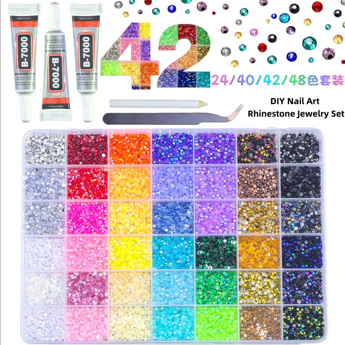 热销跨境代发24色42/40色指甲水钻套装大容量树脂钻AB钻diy饰品钻