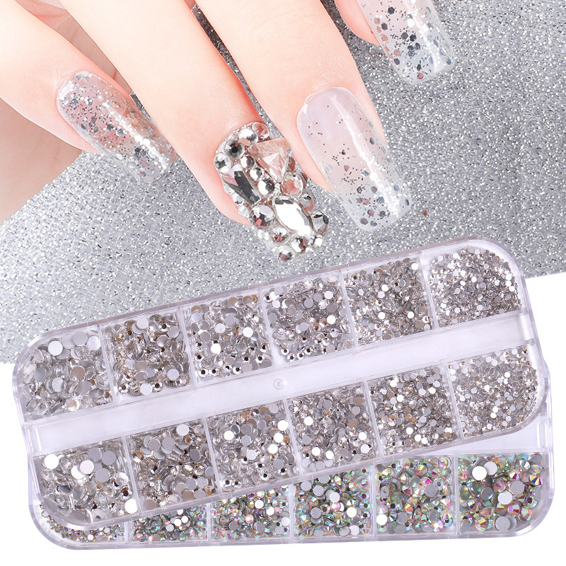 クロスボーダー 12 グリッド箱入りフラッシュネイルアートダイヤモンドミックスカラーゼリーベース樹脂平底ダイヤモンド暴力クマ手作りダイヤモンド