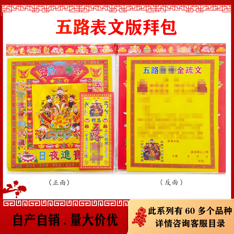 五路ベイチャイ神セット組み合わせ紙バーニングペーパー、祭り用品、バーニングペーパー、金紙セット、永新盛