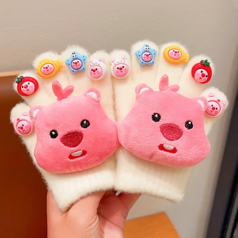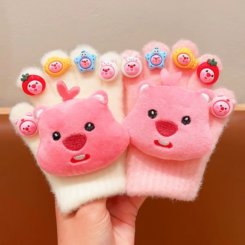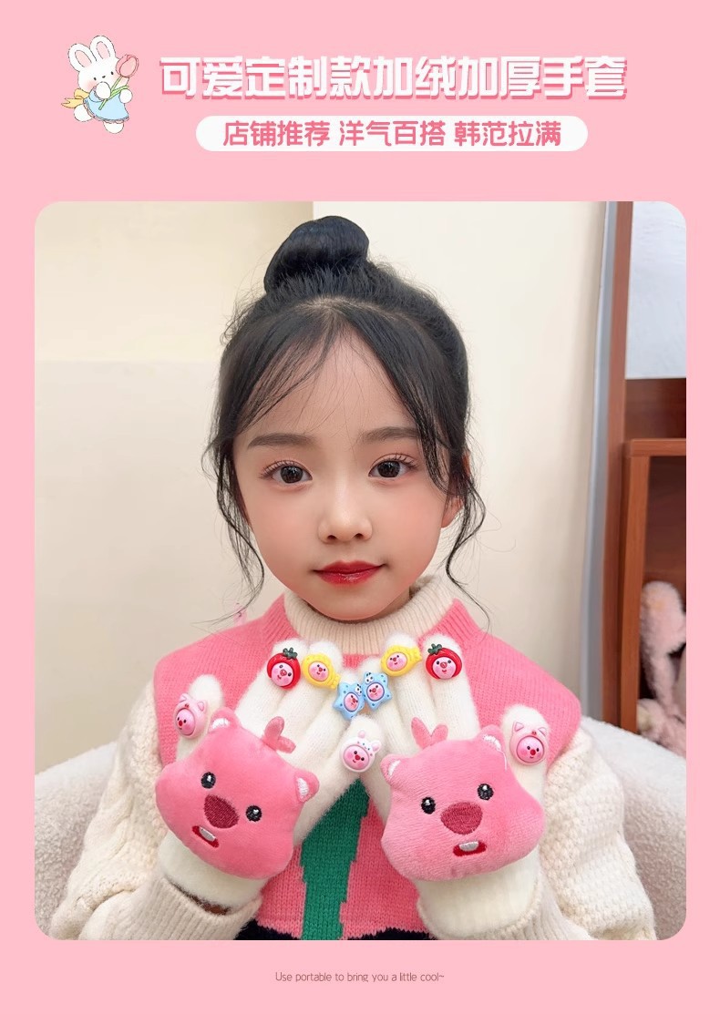 子供用手袋秋冬可爱い女の子5本指漫画ぬいぐるみ5本指手袋女の子防风保温指サック