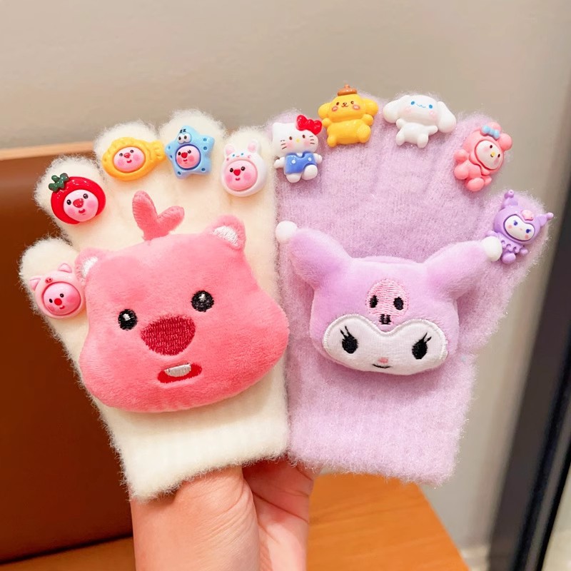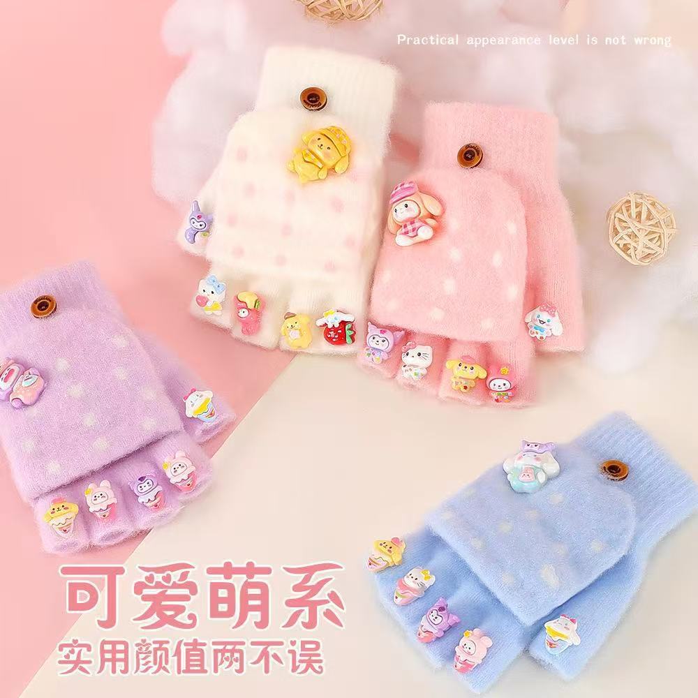 玉桂犬のクロミ男女子供の中で半分の指の手袋の秋冬のタイプの子供の手袋の保温は5本の指を分けて手袋を覆います。