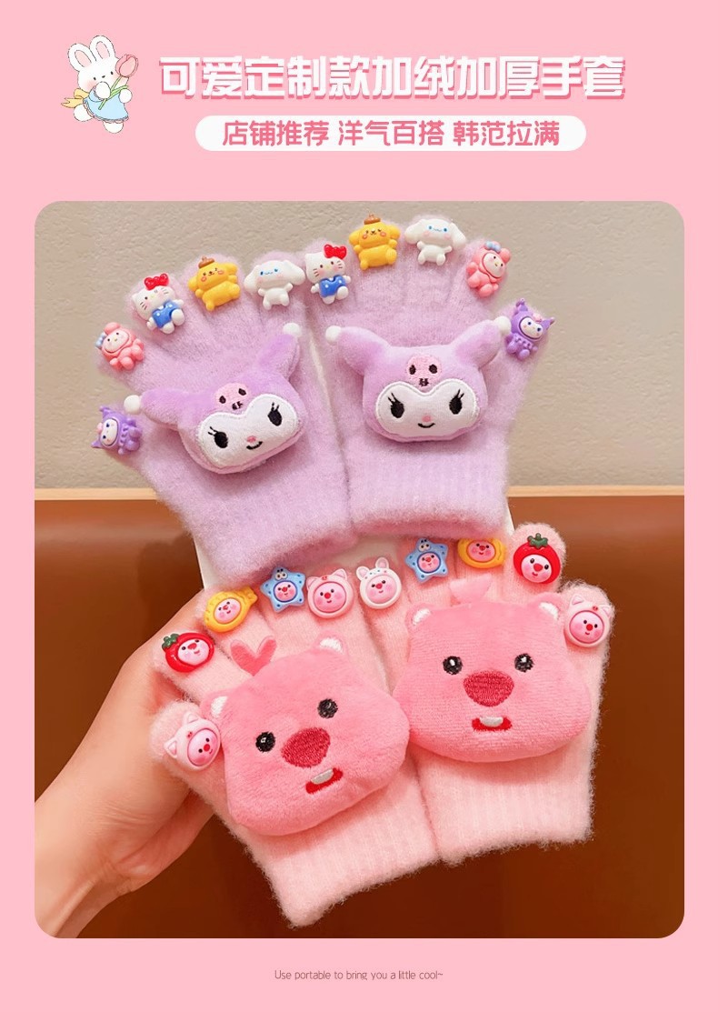 2025新款保暖秋冬季儿童手套加绒御寒分库洛米女童防风套五指指套