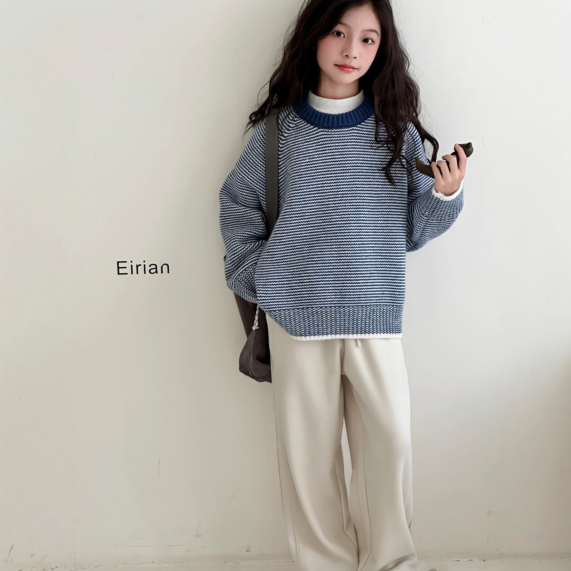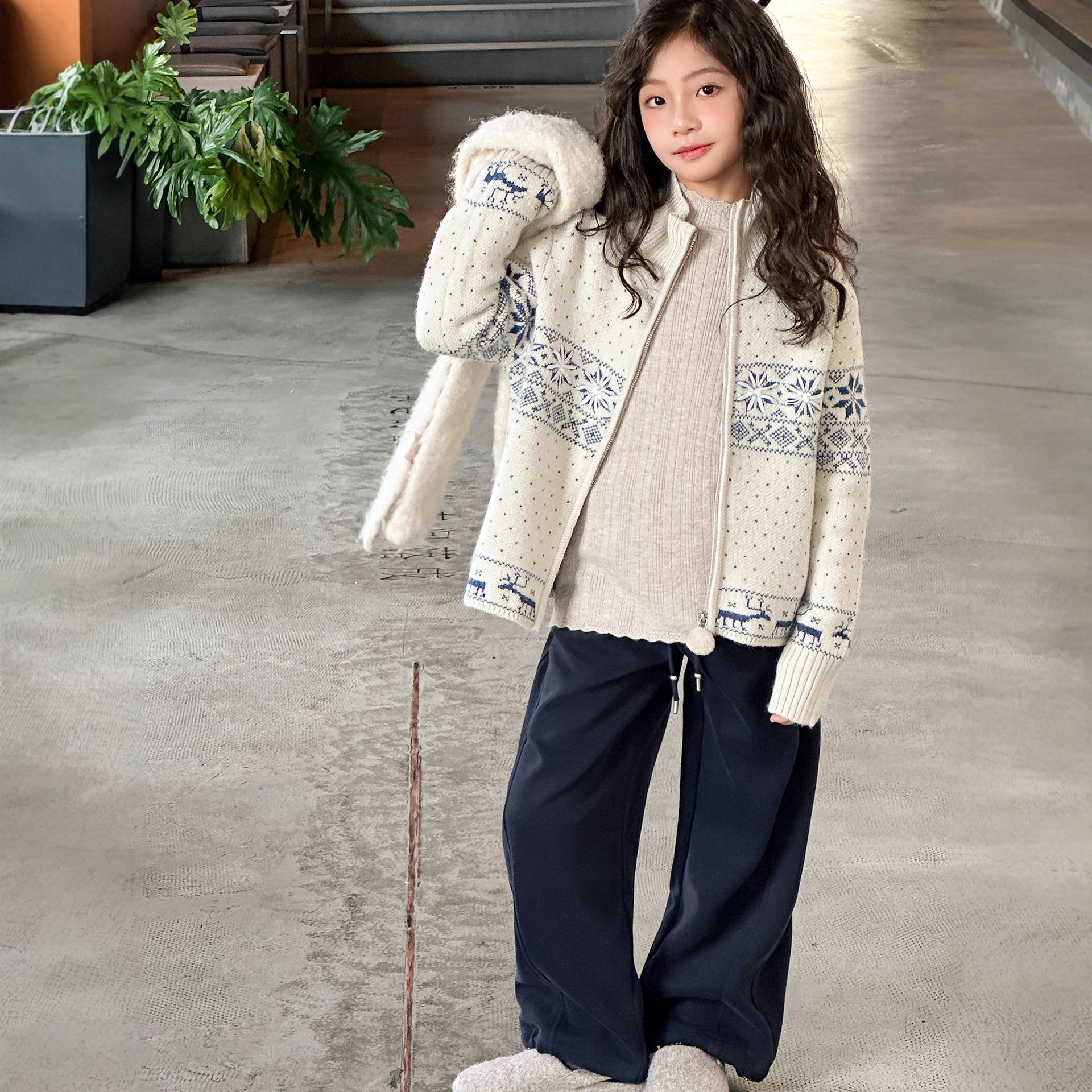 女童毛衣秋冬款2025新款儿童冬装大童洋气线衫加厚套头圆领针织衫