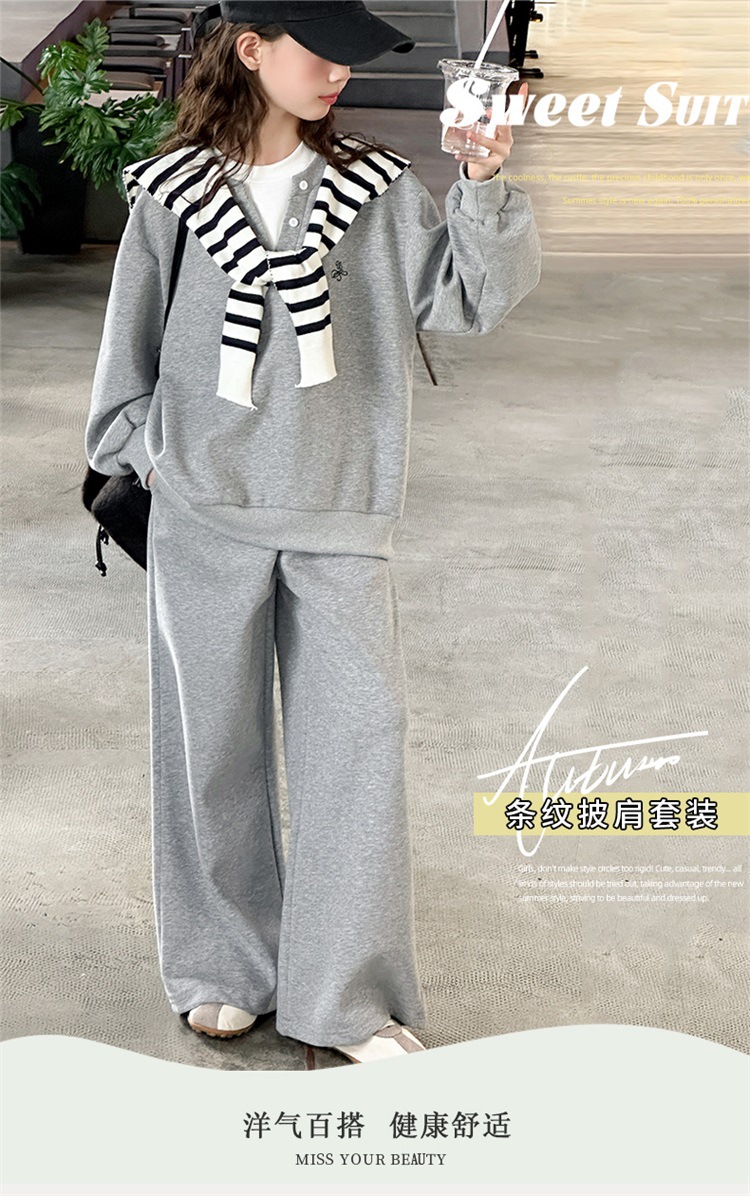 女童秋装套装2025新款儿童春秋款运动休闲假两件卫衣阔腿裤两件套