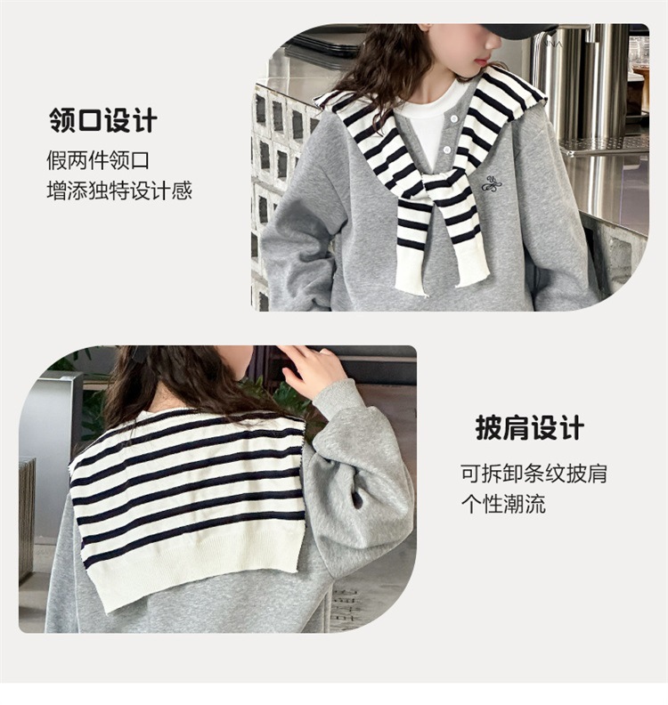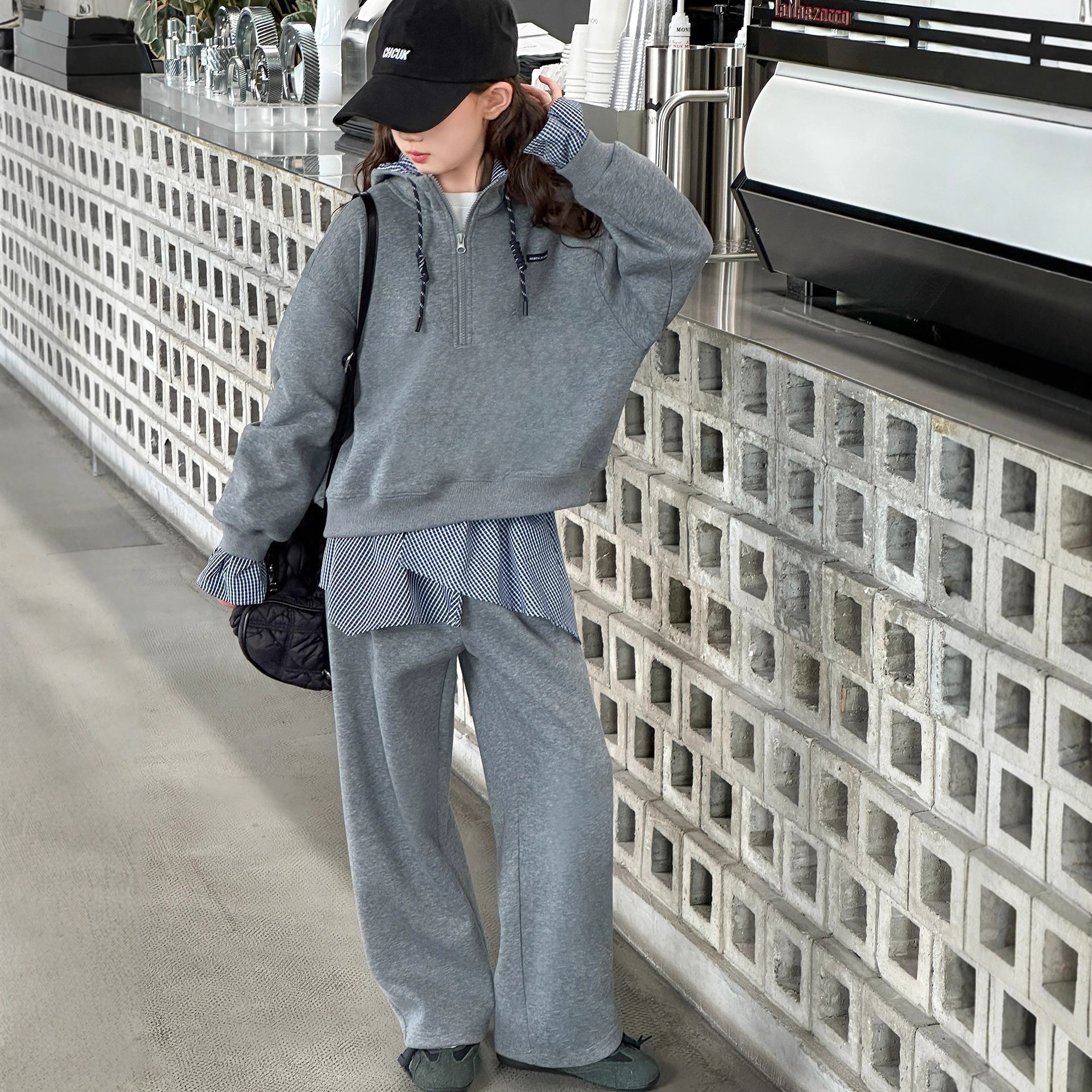 女童卫衣秋冬款2025新款儿童冬装加绒假两件卫衣格子裤套装女童卫