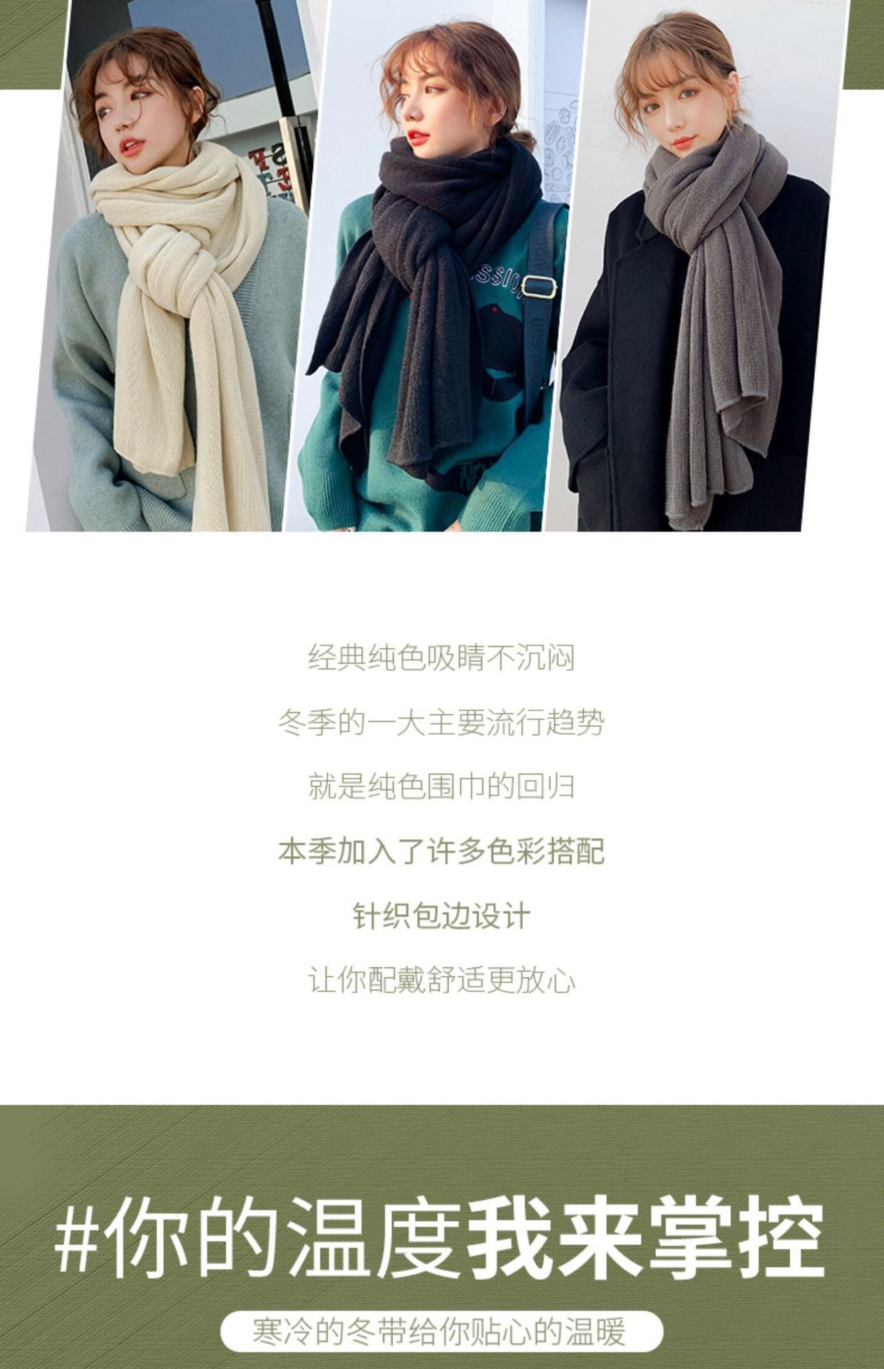 围巾女冬季高级感秋冬新款加厚保暖围脖 韩版纯色针织百搭披肩男
