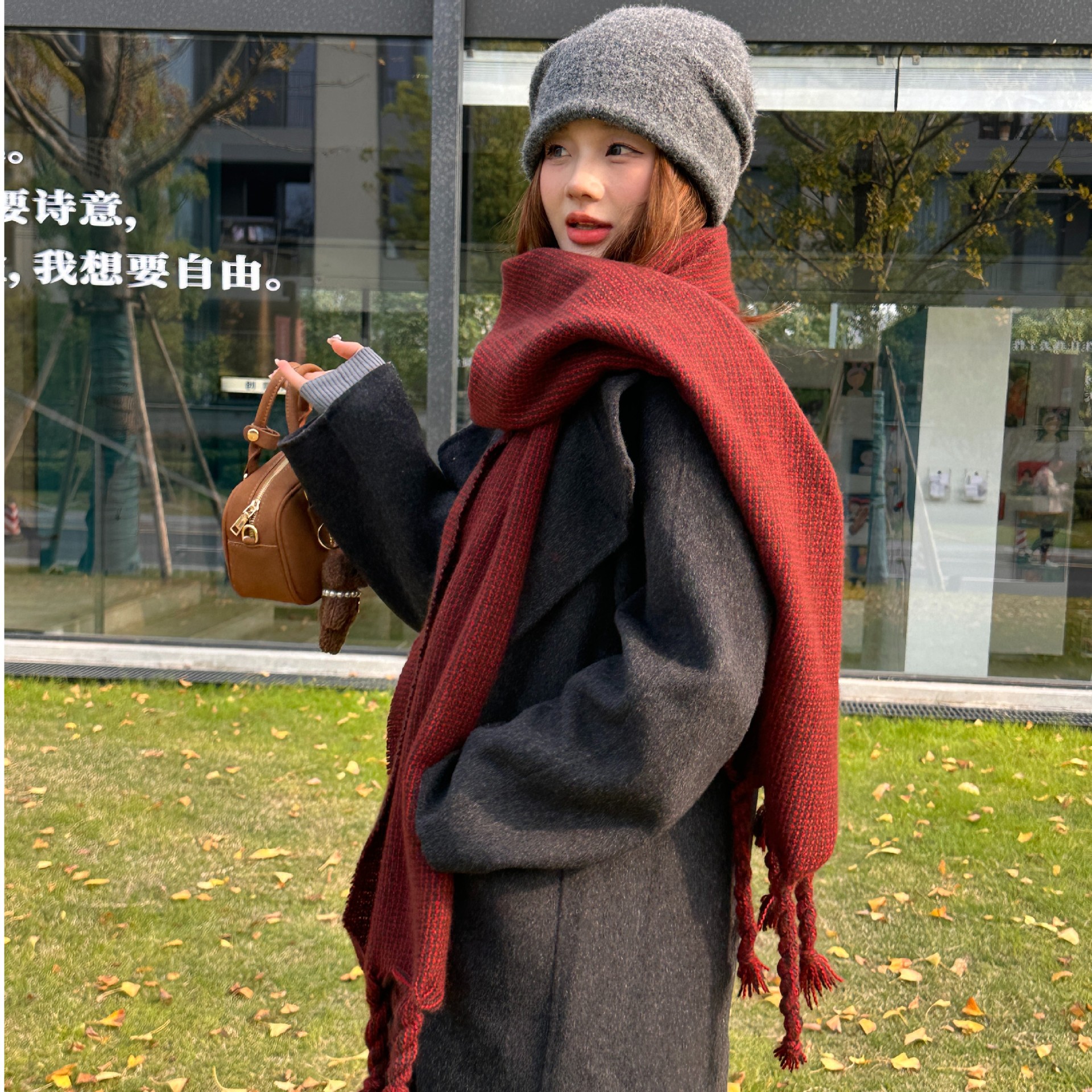韓国秋冬無地模造カシミヤスカーフ女性用冬韓国版タッセル付き暖かいギフトロゴ入り赤いスカーフ