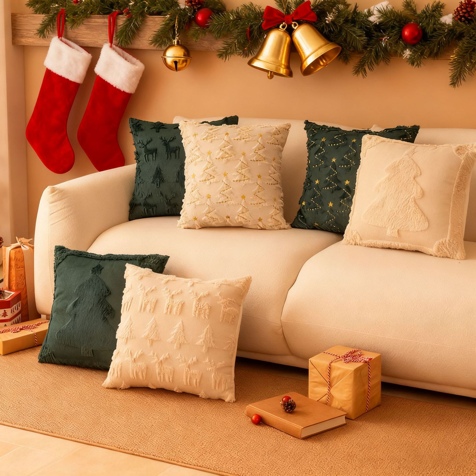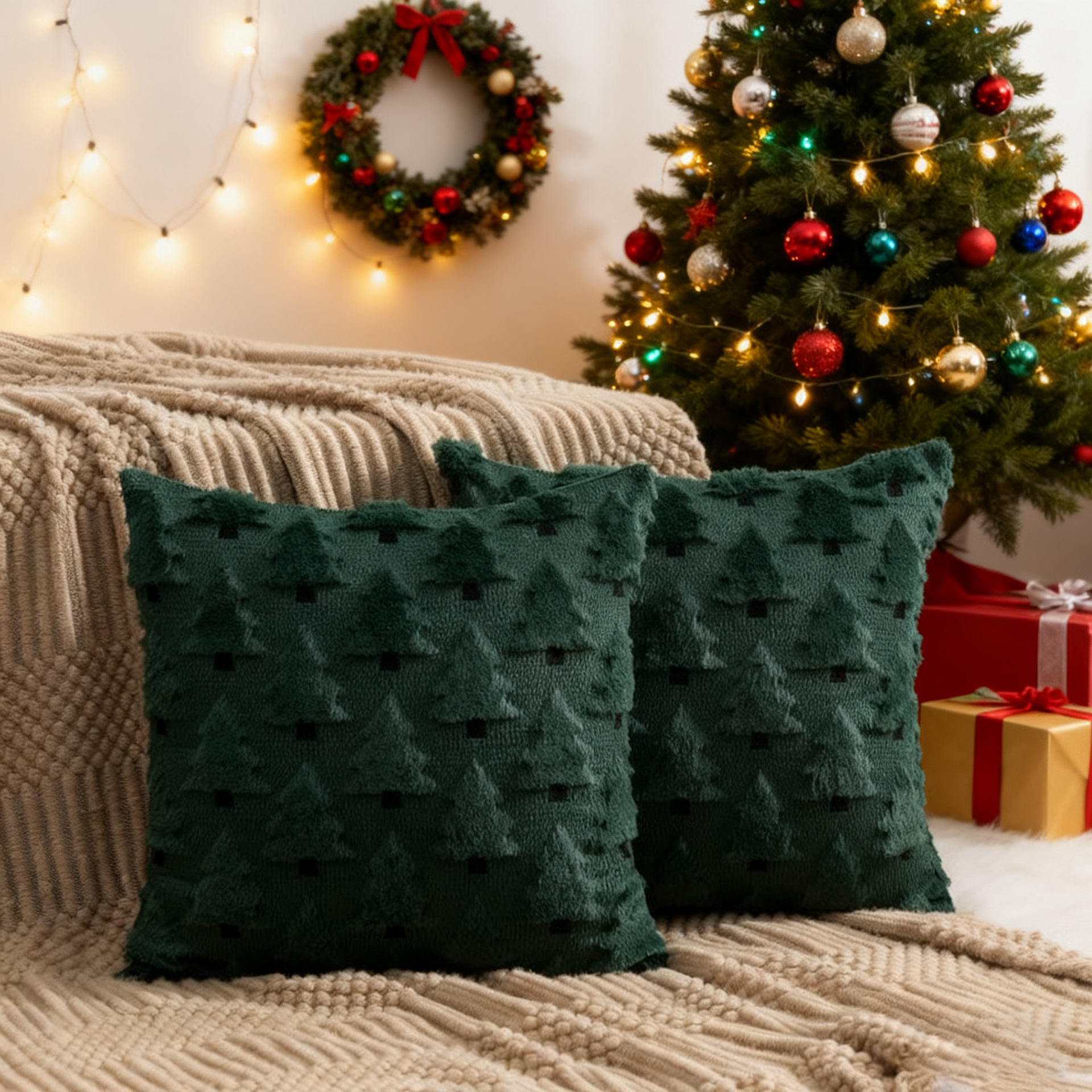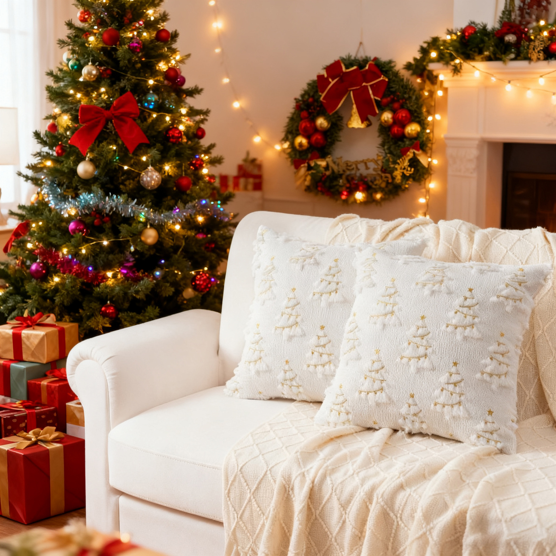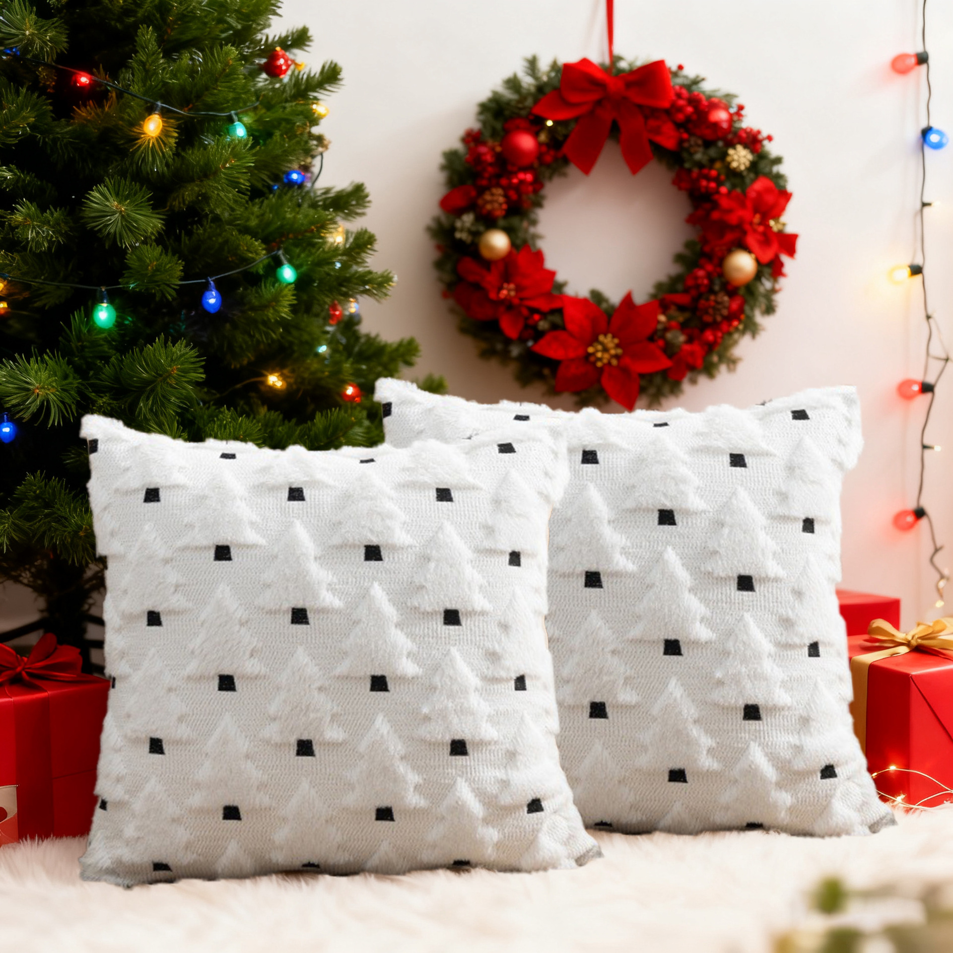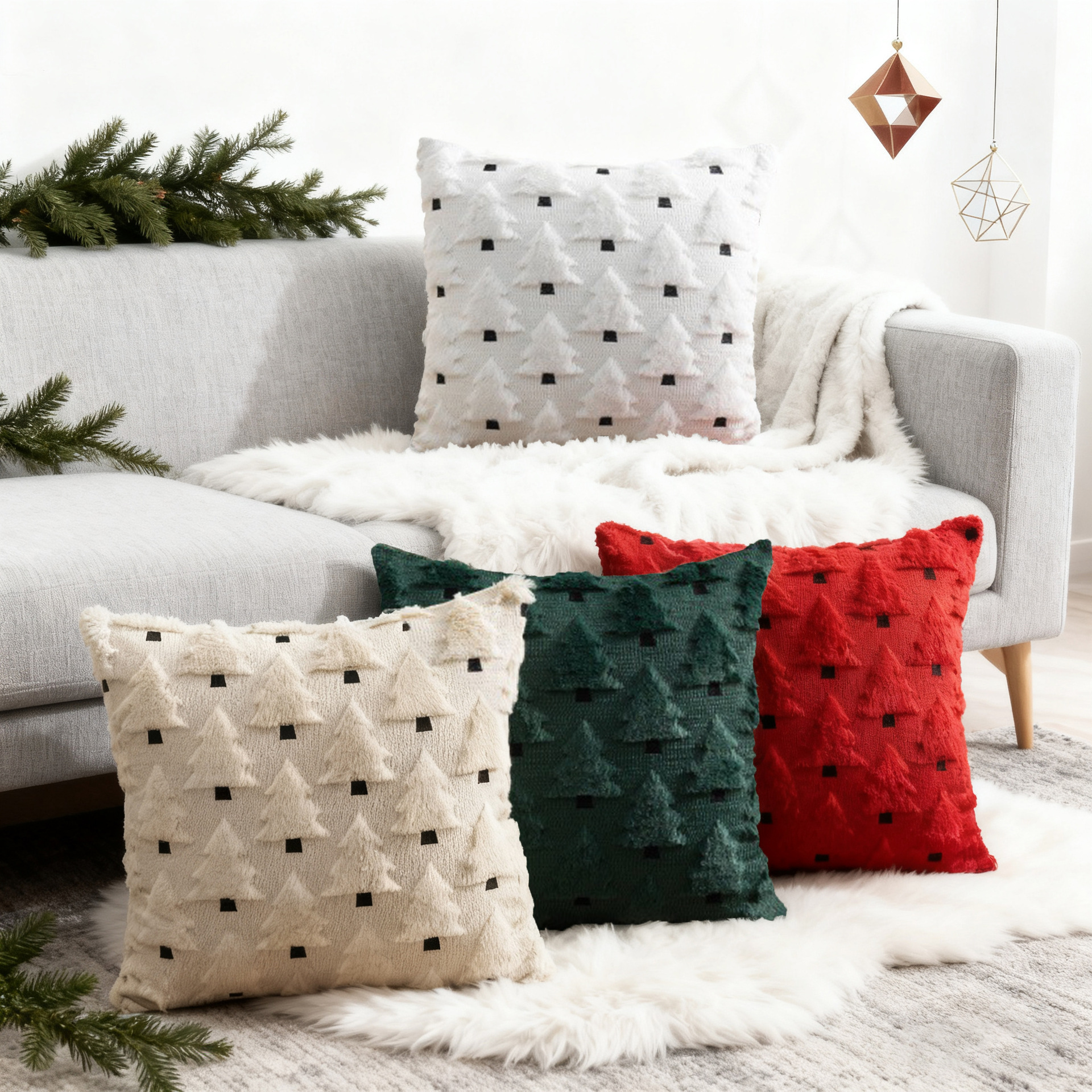 跨境新款圣诞抱枕套毛绒雪花圣诞树客厅沙发靠垫节日派对装饰靠枕