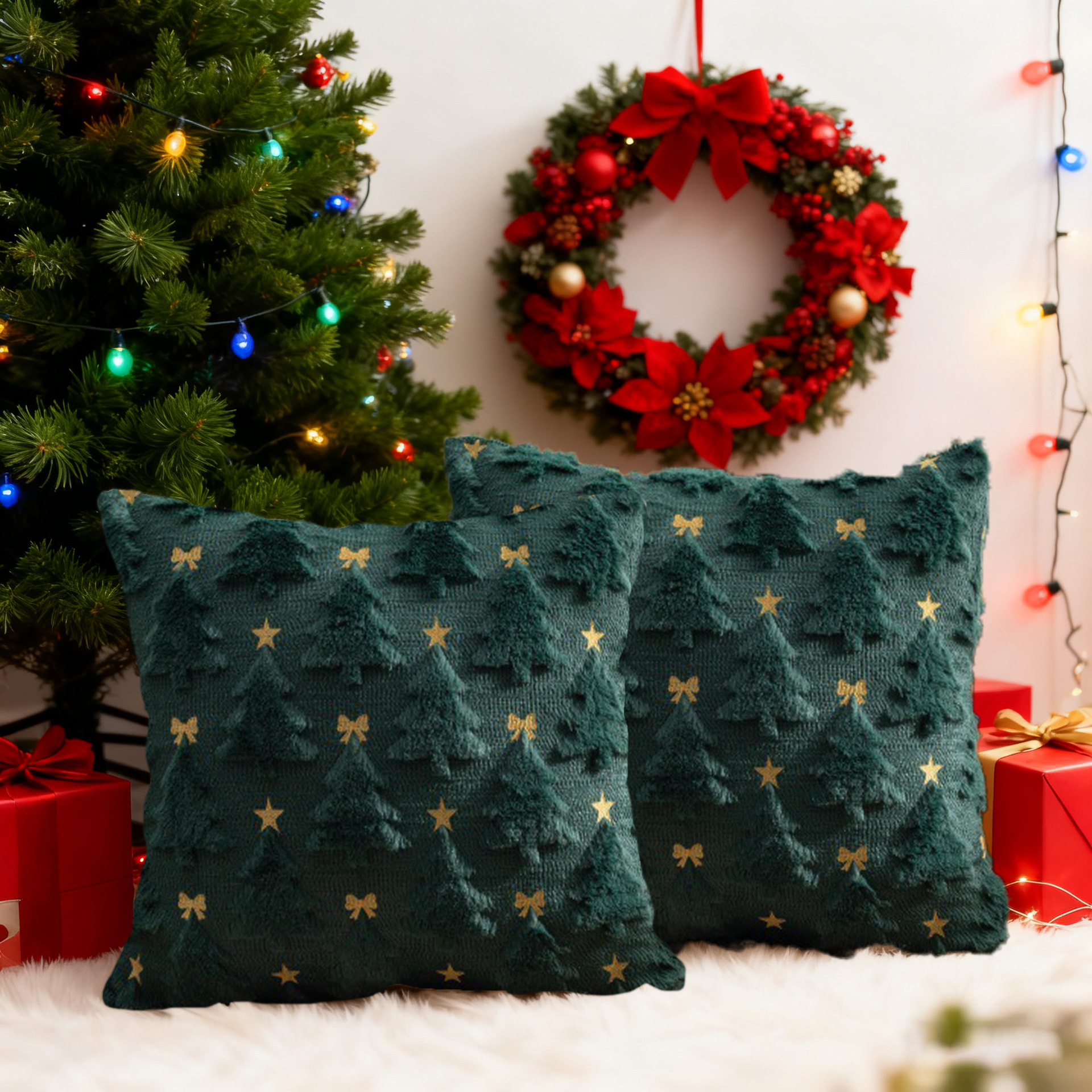 跨境热销情人节爱心抱枕套立体毛绒刺绣圣诞树抱枕套蝴蝶结抱枕套