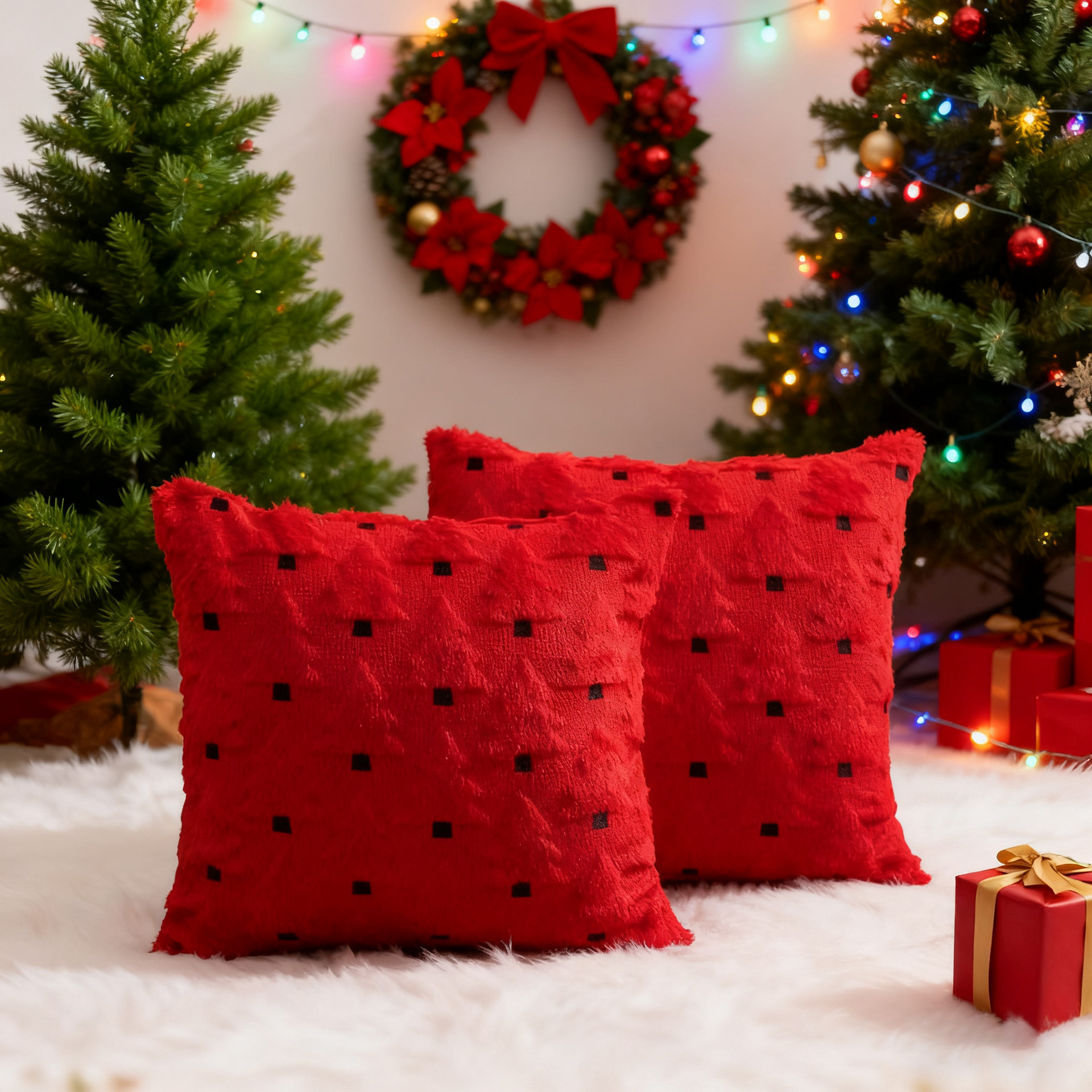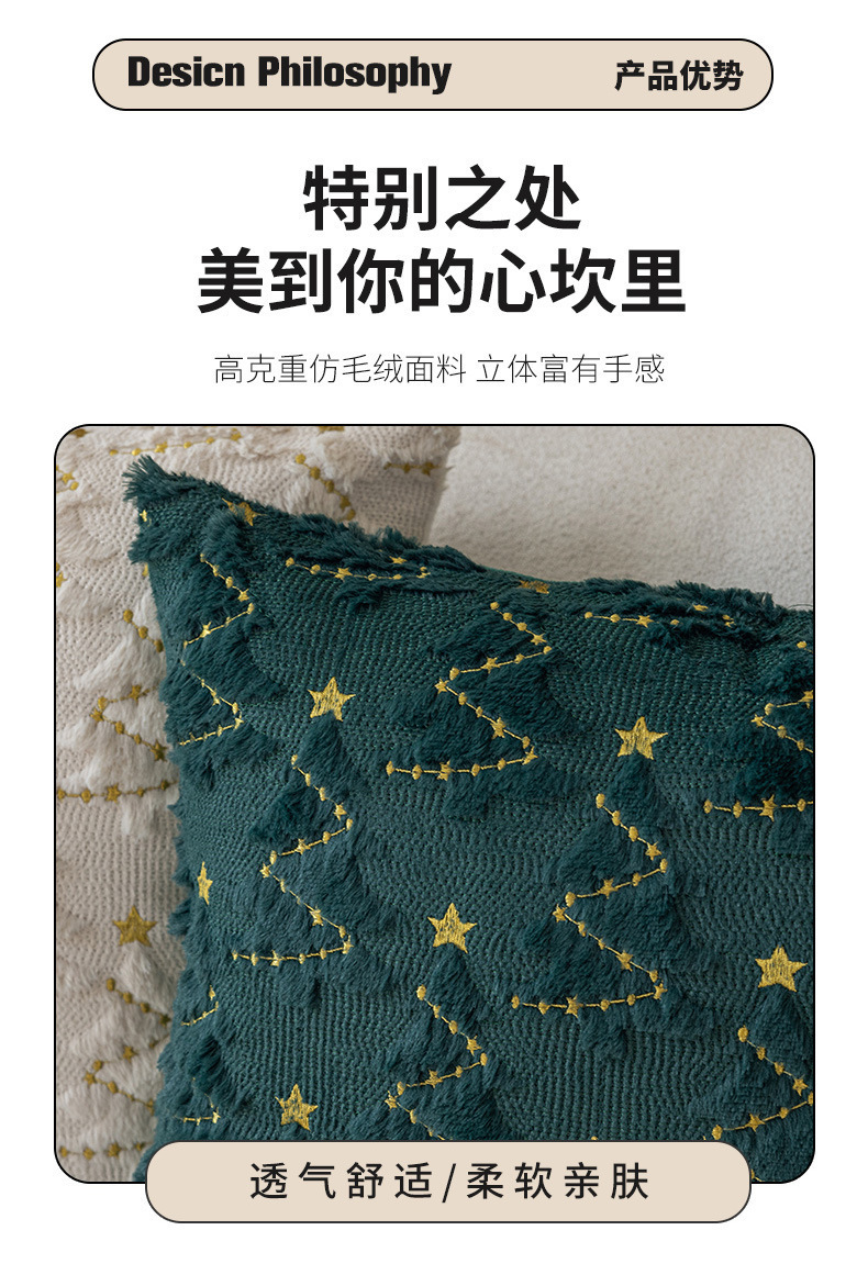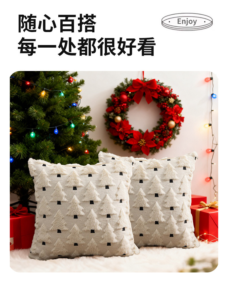 圣诞节抱枕套兔不含芯兔毛绗绣圣诞树家居沙发靠枕垫节日靠垫套