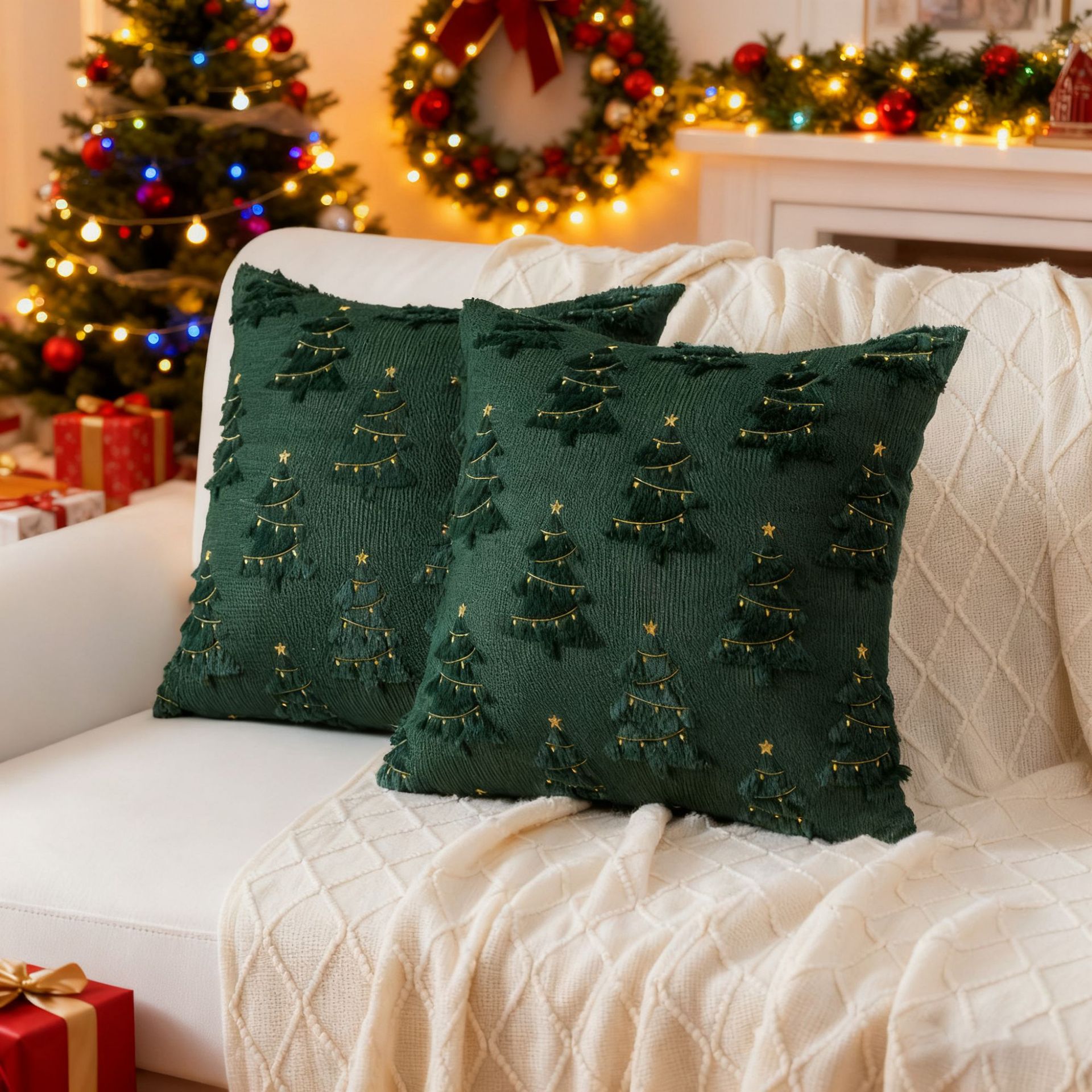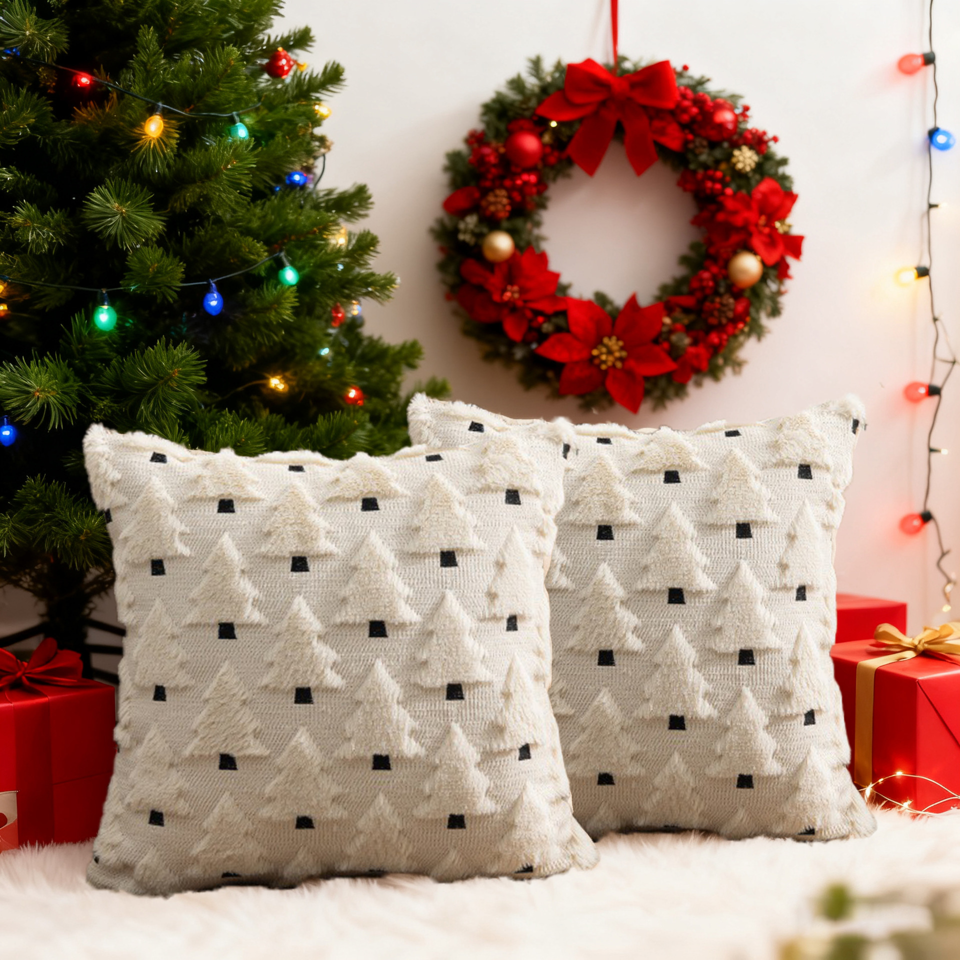 跨境爆款圣诞树抱枕套圣诞五角星刺绣款沙发靠垫家居靠枕套印花