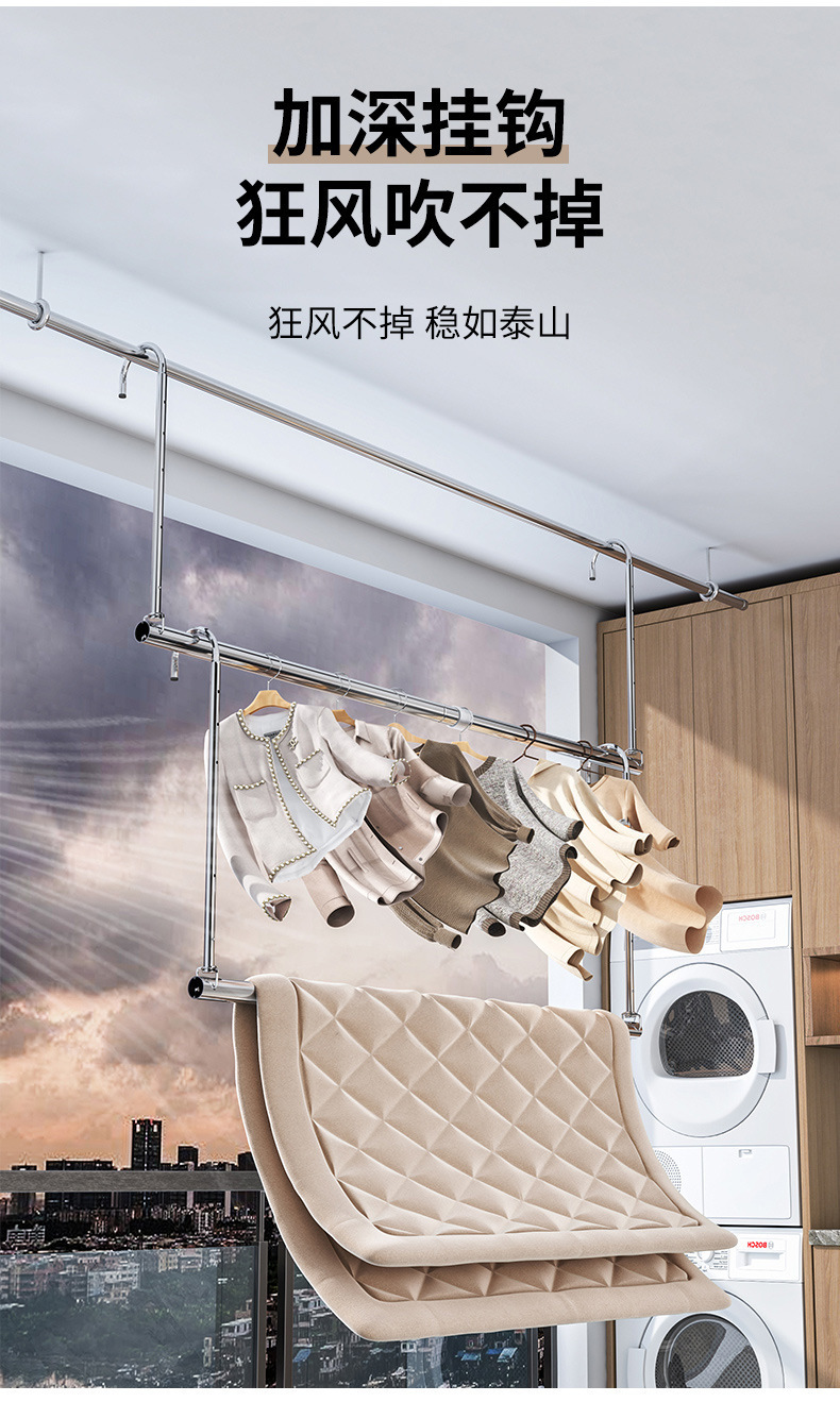 升降晾衣架阳台家用伸缩不锈钢免打孔凉衣杆捍吊挂衣服晒被子