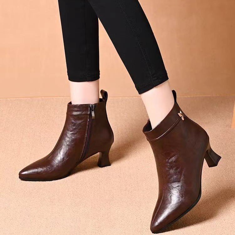 高跟尖头短靴女2025秋冬加绒时装细跟女靴百搭显瘦韩版英伦风靴子