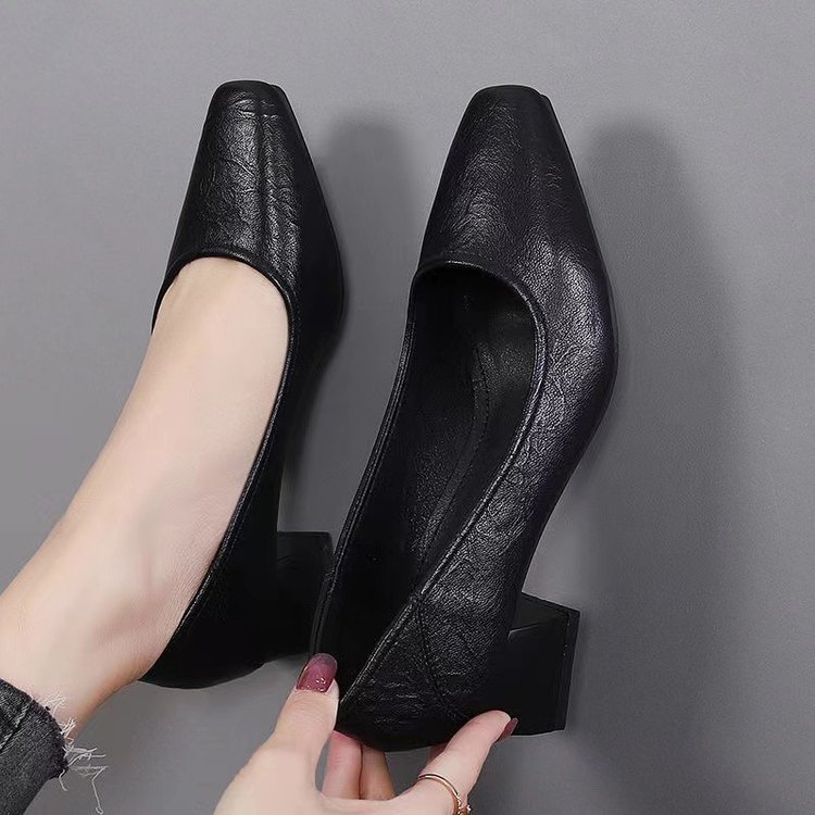 柔らかい皮の柔らかい底の太いヒールの中で小さい靴の女性の2025春の新型の百合の角の頭の靴の女性の方と仕事の靴