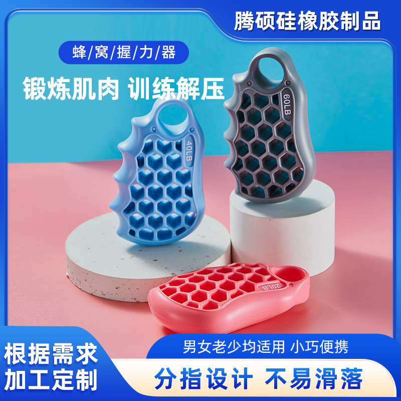 新しいハチの巣の握力器の透かし彫りの指のカードの溝のリハビリ訓練器の手のひらの力はシリコンの握力の輪を強めます。