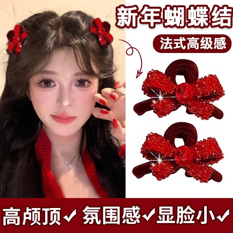 2025新款红色水钻珠珠抓夹小号刘海夹女前额碎发夹顶夹发夹子头饰