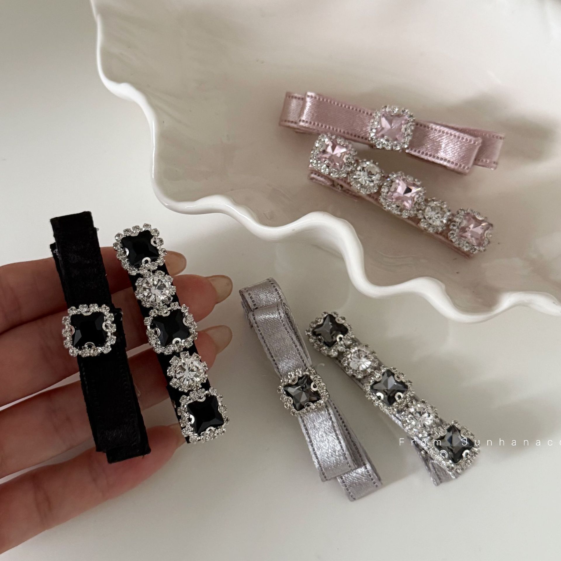 新しいダイヤモンドがちりばめられたリボンの小さなヘアピン、フェミニンな前髪クリップ、サイドヘアクリップ、小さくて絶妙な小さなグリッパー