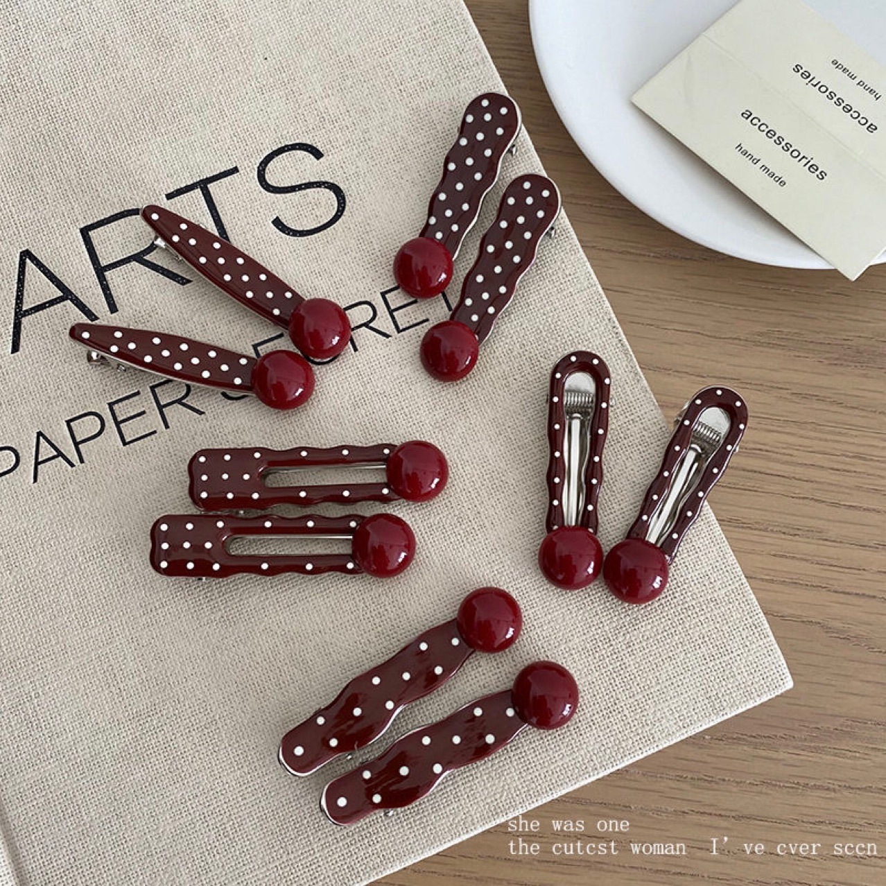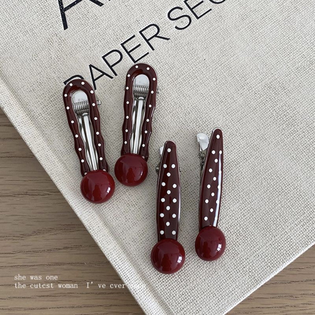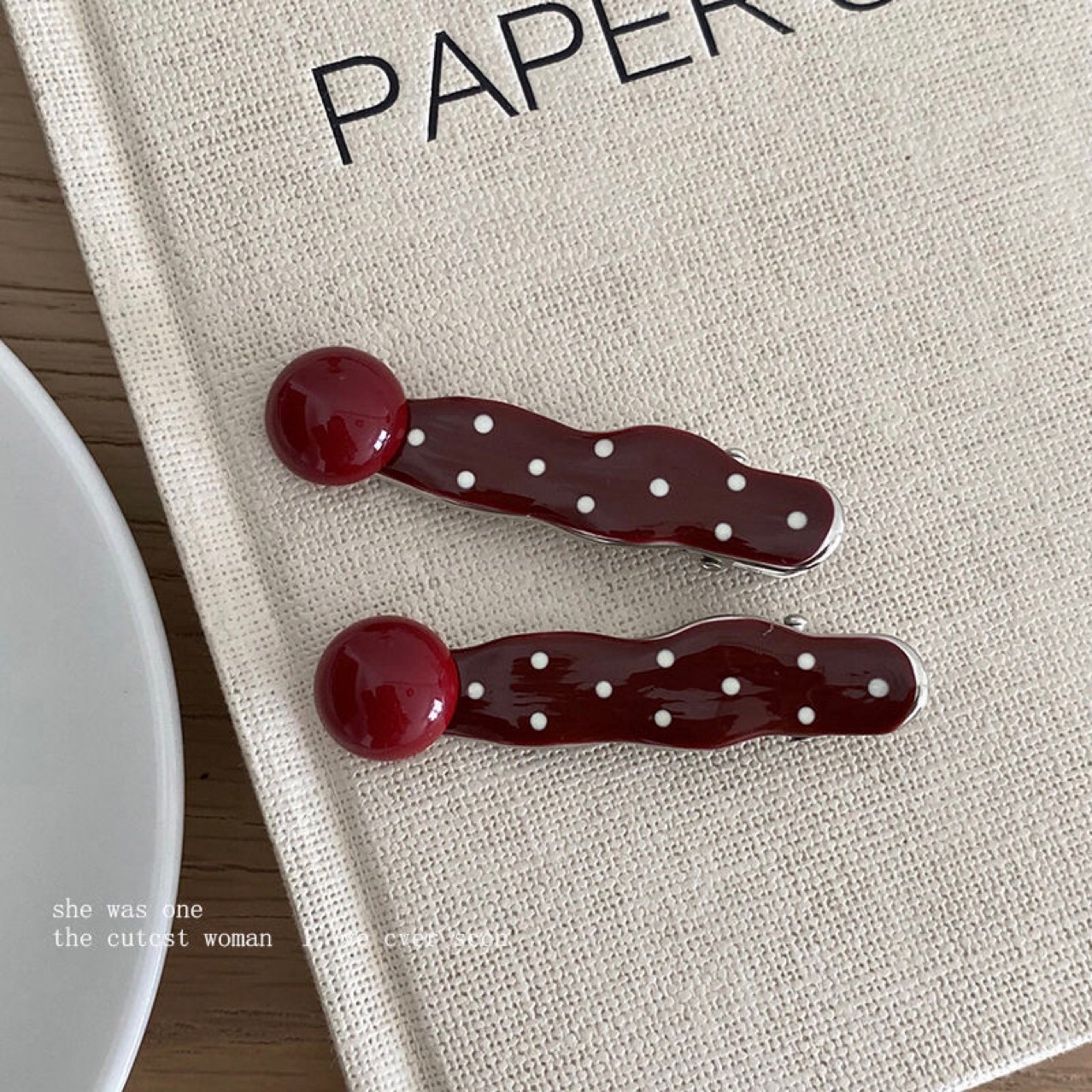 レトロ顕白酒赤色滴油金属波点珠髪クリップ前髪クリップネット赤砕髪エッジクリップ額対クリップ