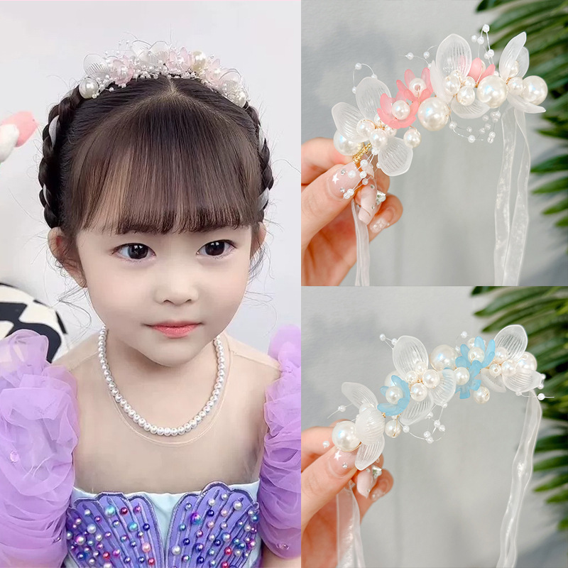 秀気の子供の花輪のヘアバンドのカチューシャの真珠のクラウンの女の子の王女の韓国式の頭飾りのショーの花の子供のカチューシャの森系